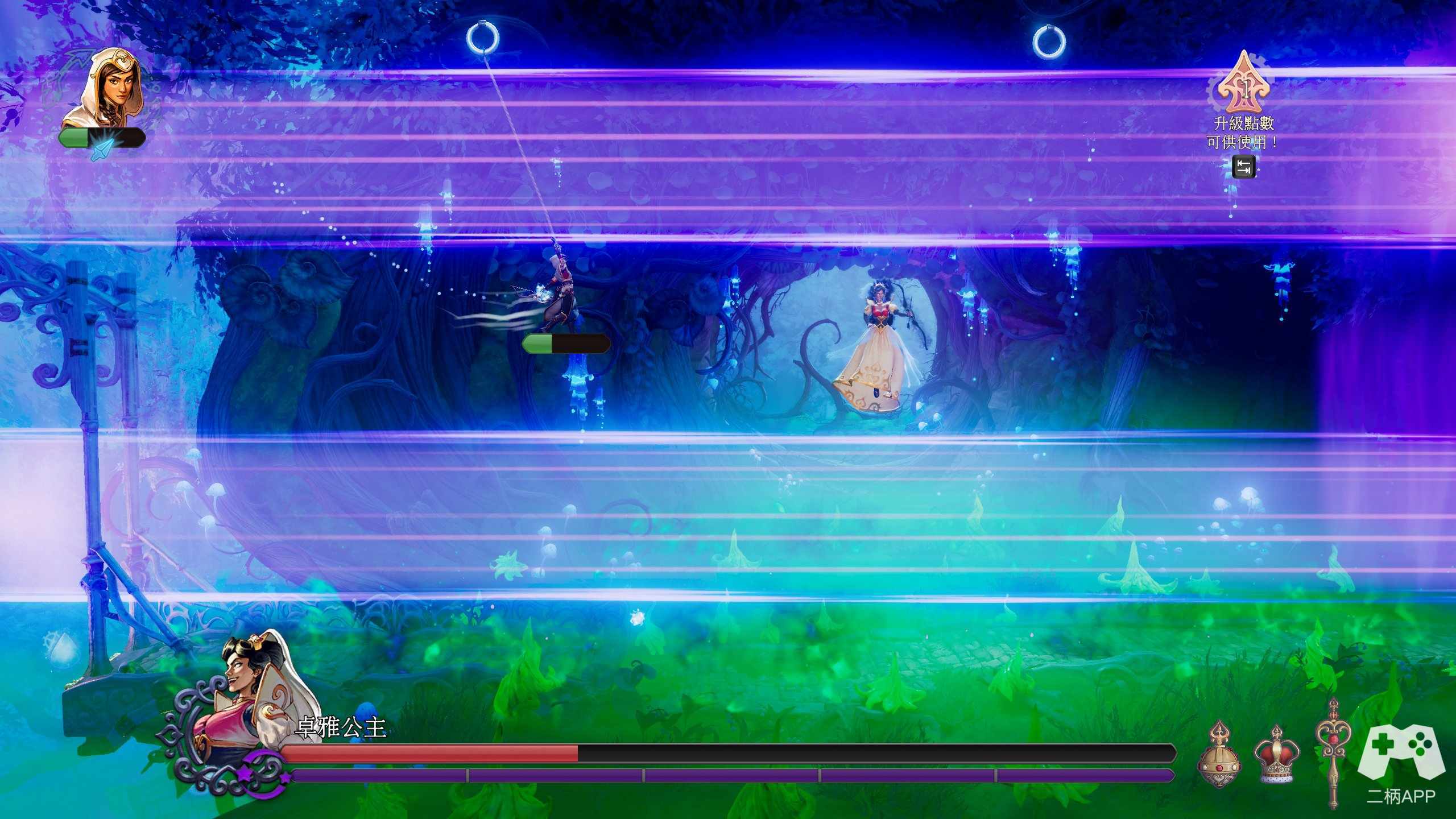 而在2010年出现的三位一体则是为大家打开了新世界的大门。乍一看平平无奇的老派玩法,平台加机关解谜而已,再加上人物技能,却意外地很吸引人。其精美的画风和2.5D卷轴过关也就这么印在了人们脑海中。到了2011年的续作,将这部作品推上了巅峰。