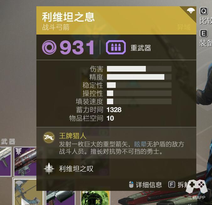 哈咯各位柄友噶点们,这个星期《命运2》周常更新后,手持季票的同学可以在枪匠班西44那里接到一把金弓“利维坦之息”的制作任务。相比于一些十个肝都不够用的金武器任务,利维坦之息的制作任务可以说在“肝度”方面已经相当良心了。那么究竟该如何获得这把武器呢?ekko就带大家一起来看看。
