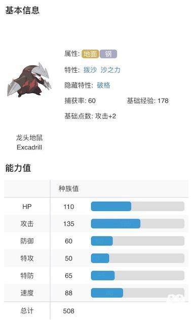 特性上可以选择拨沙来提高自身的速度。拨沙特性绝对了龙头地鼠就是沙暴队的高速打手。当然如果不考虑将龙头地鼠放在沙暴队的话,龙头地鼠的特性要选择破格。面对对手的漂浮特性打出地震实在是太爽了吧。