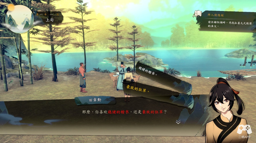 回到初始点~和每个人对话,风雅师兄对话获得