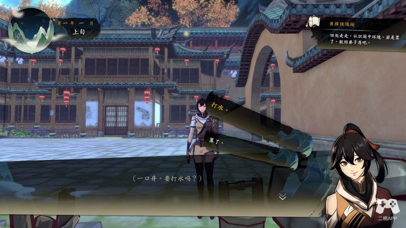 出门,右下角找到水井,在水井打水,把水打空,力量增加。然后进食堂,对俩边菜园的浇水,意志增加。和风雅师兄对话,选择接话,手帕获得。(憨憨师兄的)随后弟子社区的收完。