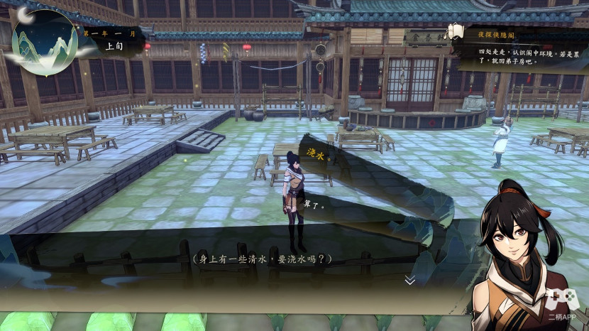 随后离开酒楼,去茶铺,和左手边女子对话,指路~药品获得。然后继续调查,获得水蓝色发带*1,去右手边,和孙大夫对话,然后直走和菜二狗对话,每样买一个,然后对话,新生宴我吃了辣椒,所以没啥意外,加气血和真气上限,我觉得还挺值,然后继续对话取名,这个总能选对,虽然我第二次才选对。然后跑到茶馆萧师姐的桌子,对话,一直对话获得 活血养心丹*1,得到后,去茶老旁和小孩对话,然后再和茶老面前的大婶对话。