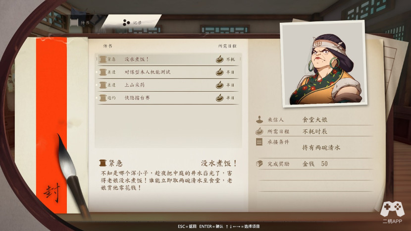 到招生点,我们开始过剧情(对话只要彬彬有礼就加修养,所以平常怎么选你懂吧。),正式进入侠隐阁,新生宴提一下就是和做饭大妈对话,选像学姐,获得绿豆糕*1。其它的随你们性格。