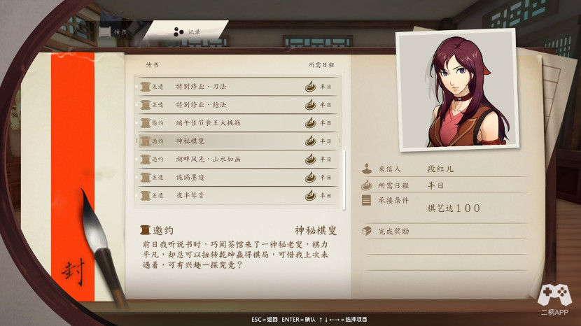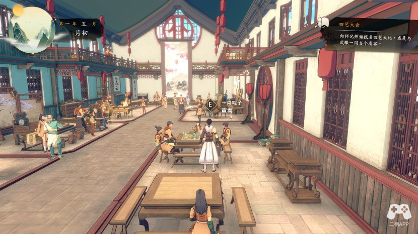 这时候你手头有4颗粽子,然后参加四艺比赛,四艺比赛,你只要超过100,就能获得优胜,题目也需要全对,其中琴棋给的衣服,书画给的饰品,这个随你选择的,东西都还行。等完成这些,粽子数5。这时候去门口旁桌子旁,和之前空位的弟子对话,这个你自己考虑,其中4个粽子是金粽子饰品,加200气血,5个粽子是养心决,这门心法适合耗气多的,需要读俩次书。
