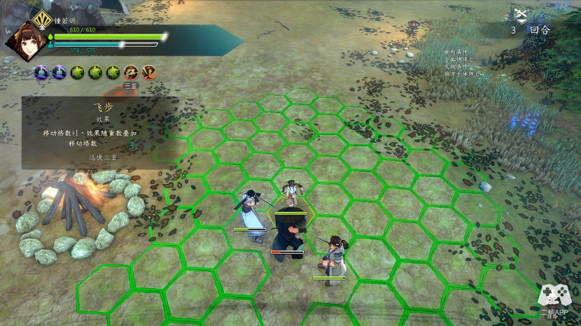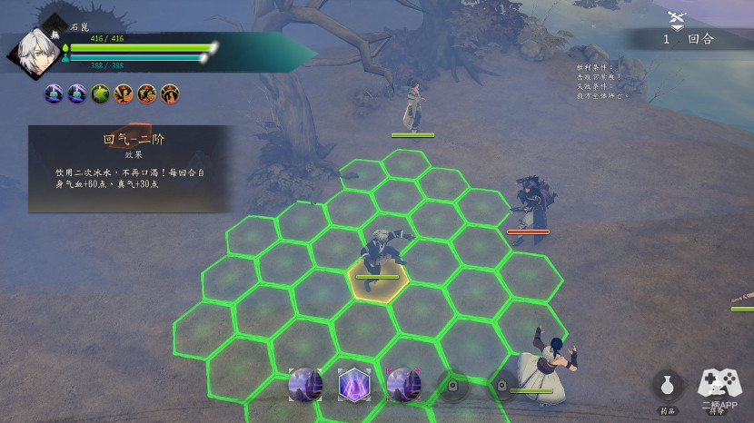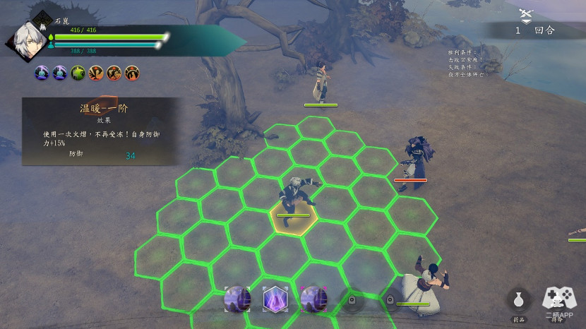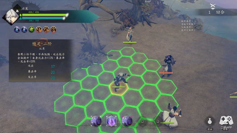 胜利后对话,继续切磋,这时候拳脚师父过来了,这时候不能被师傅抓到,霍师傅只有一个远程技能,时迁夜到甲,攻击距离3,果断把飞蝗兄卖了,2格移动距离,可以轻松到达脱离区。成功灵巧增加。