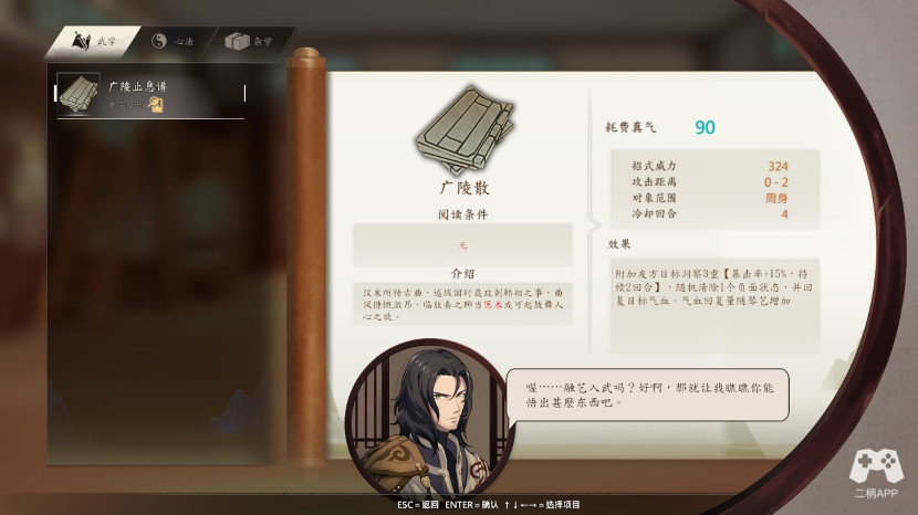 琴技是给一门加血的技能,广陵止息(说起来这个不应该加攻或者暴击吗,这他喵可是刺客曲啊)