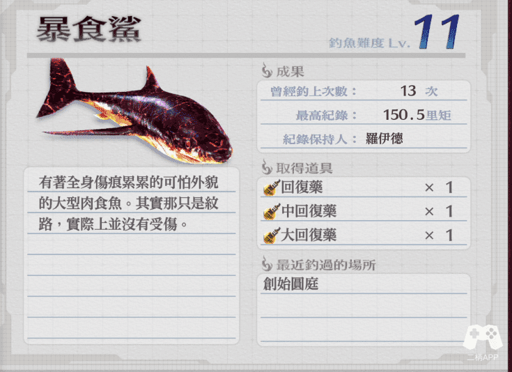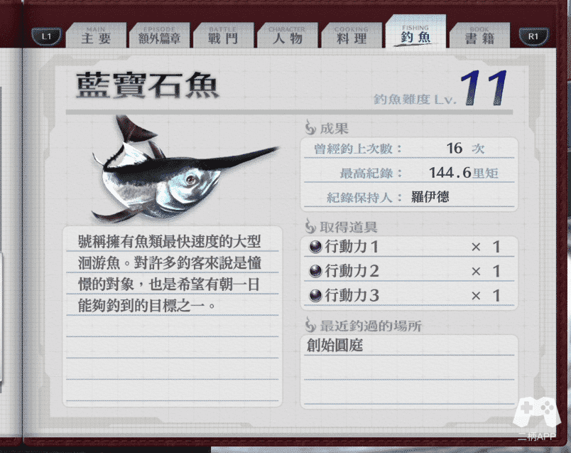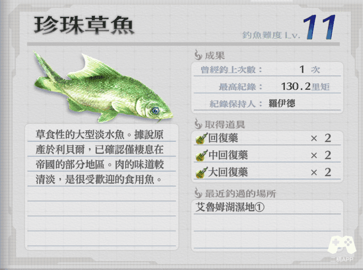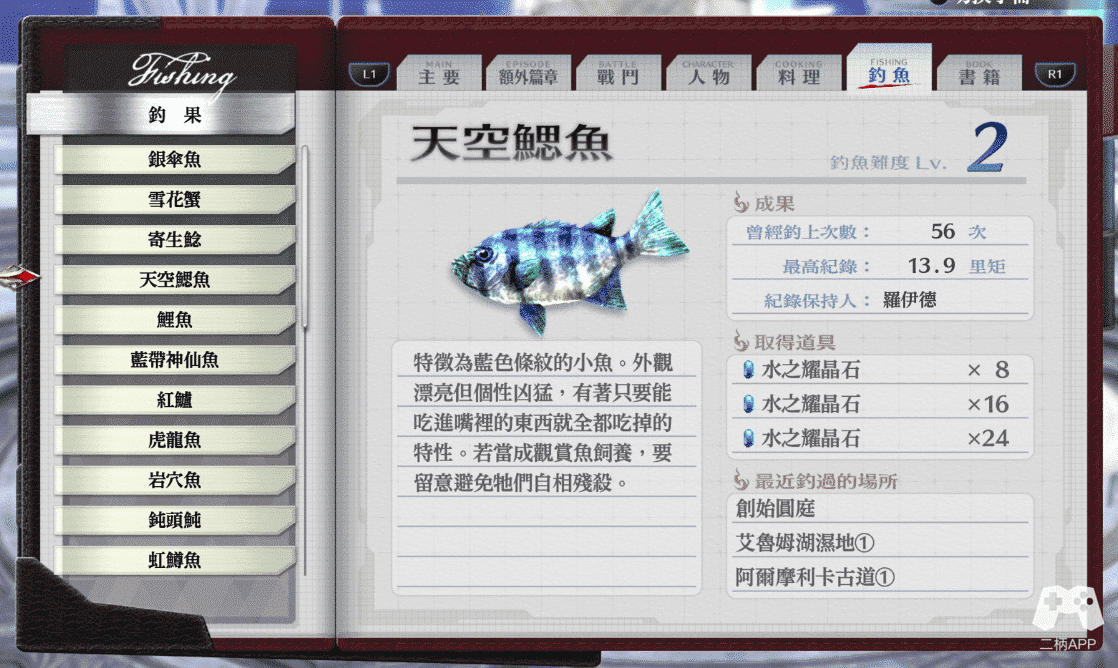 钓鱼笔记一共有26个鱼图鉴,另外还有12种钓具