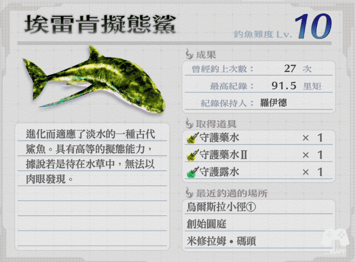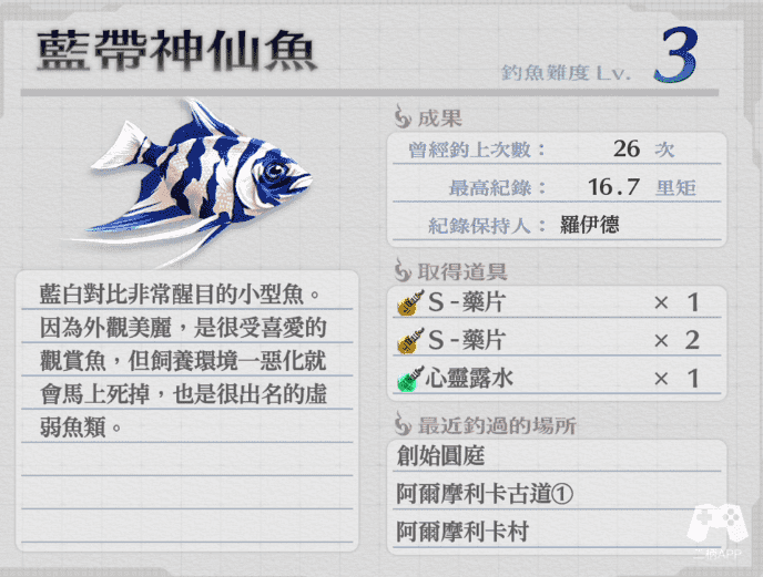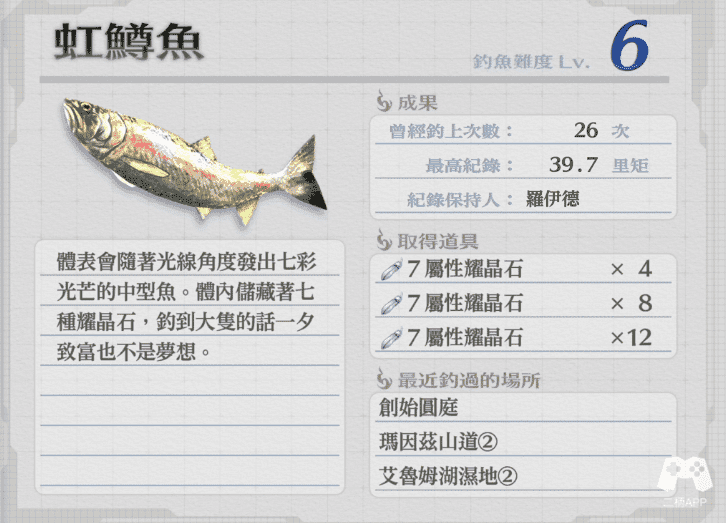 第26个鱼,需要钓到25种鱼以后,到乌尔斯拉小径②的钓鱼点钓出