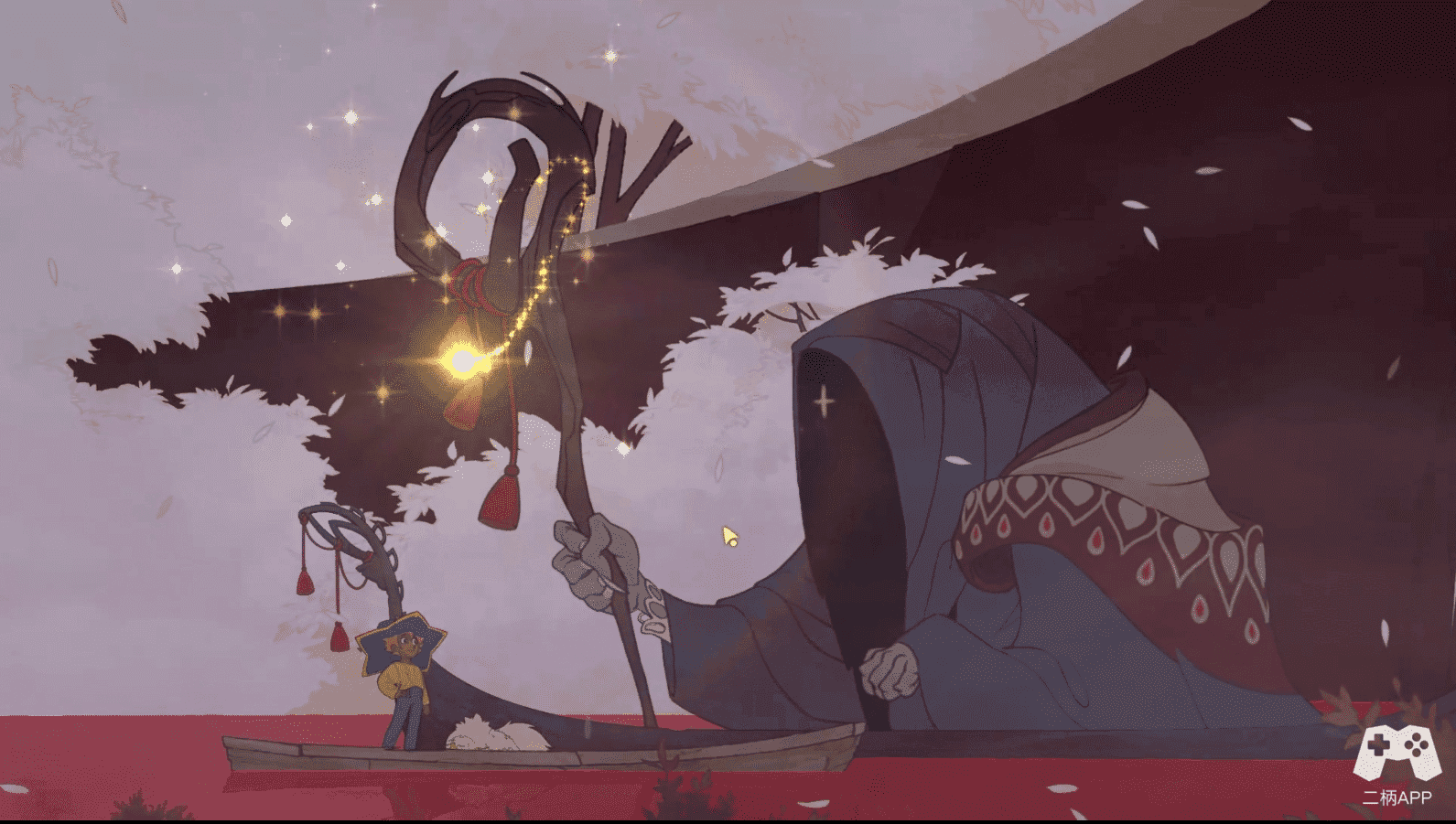 游戏的主题就很独特是死亡、关爱与离别,讲述了主角斯黛拉(我本来还以为主角是个小男孩,玩到青蛙叔叔喊侄女那里我才知道这是个小女孩)继承了上代灵魂摆渡人的职责,去各地寻找弥留的游魂,接引上船后,完成他们一个个心愿,并陪伴他们度过生命的最后一刻。最终与之分别将他们送进永恒之门去往真正的死亡的国度。主题虽然高深、悲伤,但游戏剧情却是在平平淡淡中温暖着玩家。每一名船客都有这样那样的问题,使其无法就此离去前往永恒之门。第一位船客鹿姐,傲娇属性点满,出身富贵之家却觉得自己总是被父亲所操控,因此厌恶自己的父亲。但在内心深处还是爱着父亲,一直高傲着不愿承认,直到最后才坦诚面对自己的内心。与之类似还有蛇老师,,她认为父亲就是一条强硬的龙,自己这一生都在对抗父亲的强硬,但是到了最后她终于发现自己也越来越像父亲,即将蜕变成为自己最反感的龙。而青蛙叔叔阿图尔不断地提出想吃的美食,可在酒足饭饱以后,依旧说着想念自己的女儿。到此为止不想过多剧透了,其他角色就不谈了。整个剧情相当平淡,没有大起大落,没有惊心动魄的冒险、没有浴血厮杀的战斗,有的只是平淡的旅程日常、平淡的船客人生回忆。这也是本作最独特迷人的地方,能引起玩家们的共鸣,人生本来就是如此平淡,但有相遇、有欢笑、有悲伤、有烦恼、有离别~~
