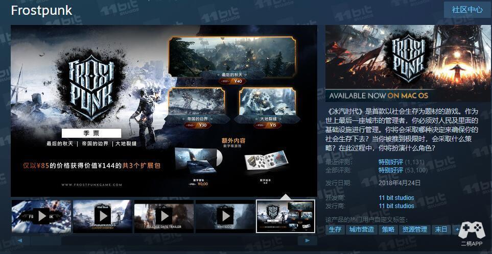 作为11bit推出的末世模拟经营游戏,《冰汽时代》对于末世环境下的构建,悲壮的配乐配以流畅的游戏体验让众多玩家沉迷于其中,我们也在游戏早期推出过一期视频节目来专门介绍这款游戏