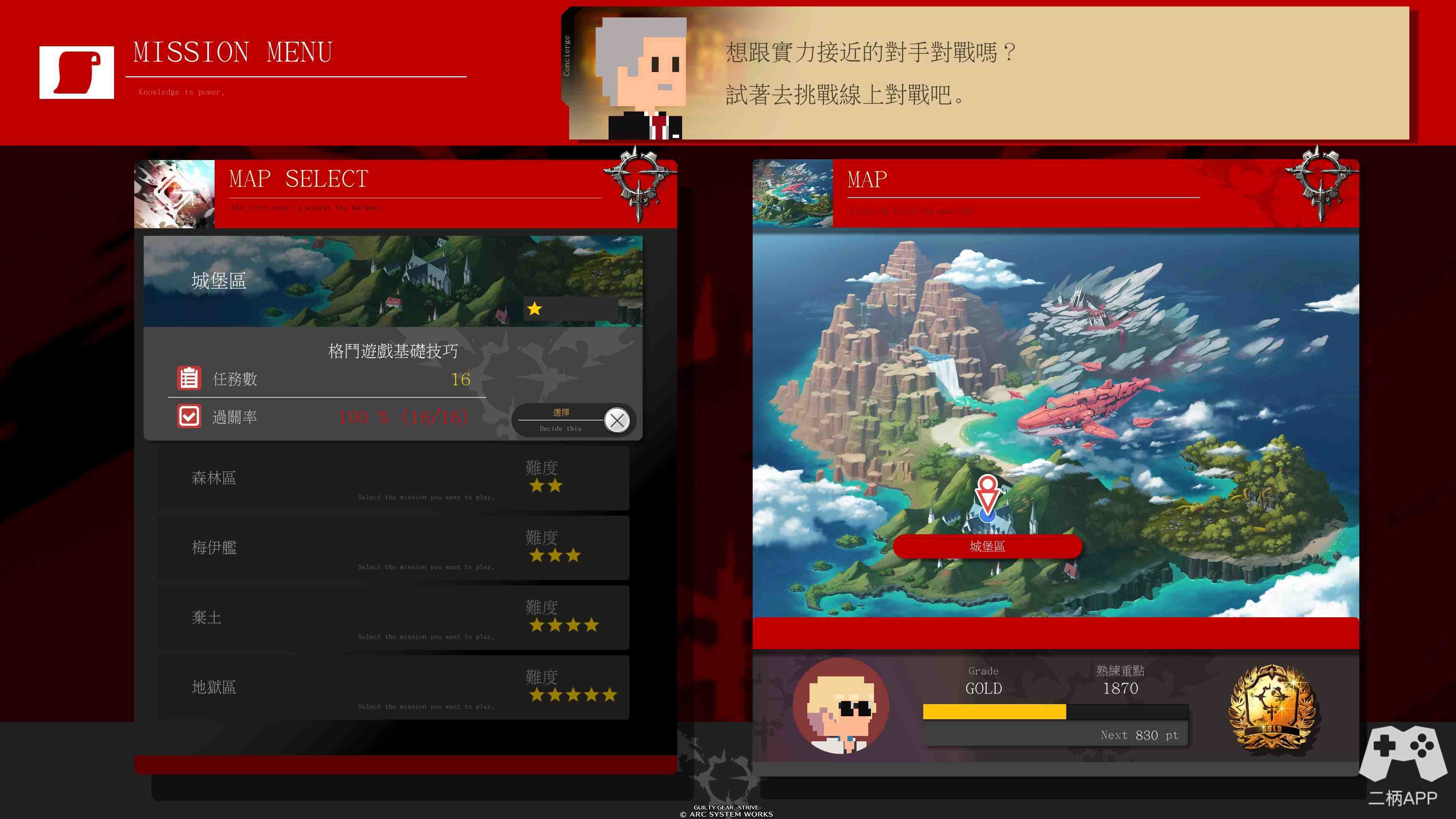 另外,比起简化系统让路人容易入坑,《罪恶装备:斗争》本身配置的新手教学还是挺详细的。主要是通过任务模式来学习,分为五个难度。任务模式中不仅有各种实用技巧,也有各个角色的部分对策。对于刚入门的玩家来说,有个简洁明了的进阶途径还是非常不错的。但我个人觉得,任务模式的内容,也忒多了点……新手如果做任务模式,应该需要较长时间才能完成,还挺消磨耐心的,而且一口气接受那么多内容,一时之间也消化不来。不过说实话,好像也没有什么更好的引导教学方式了……