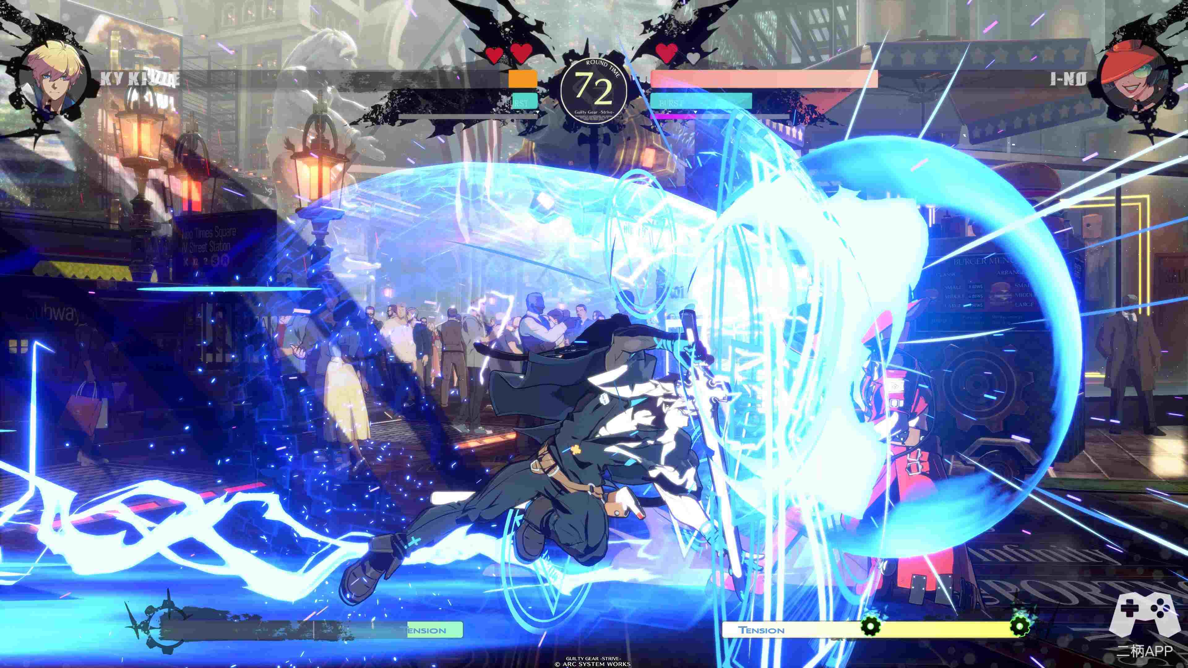 大概是为了方便吸引新人,《罪恶装备:斗争》这作继续保持了简化系统方面的思路。主要就是明显简化了连段,基础连段基本都在5HIT左右,系列前作的空连也很少了。硬要说的话,长连段不是不能打,但一般摸到对方后打个短连段的伤害回报已经相当不错,很多时候玩家费心追求的长连段除了看着酷炫,回报并不是很大,没啥作用。说实话,至少我个人对本作的伤害还不是很看得懂……