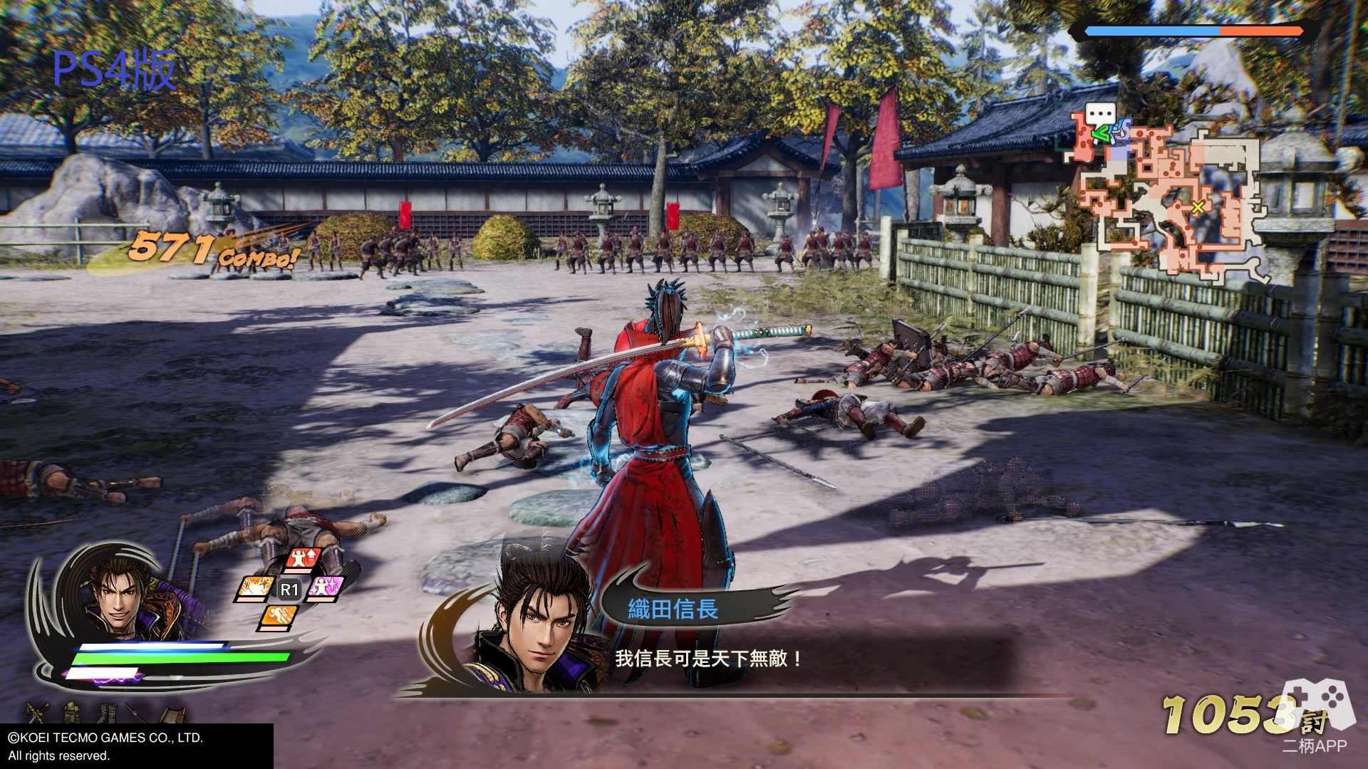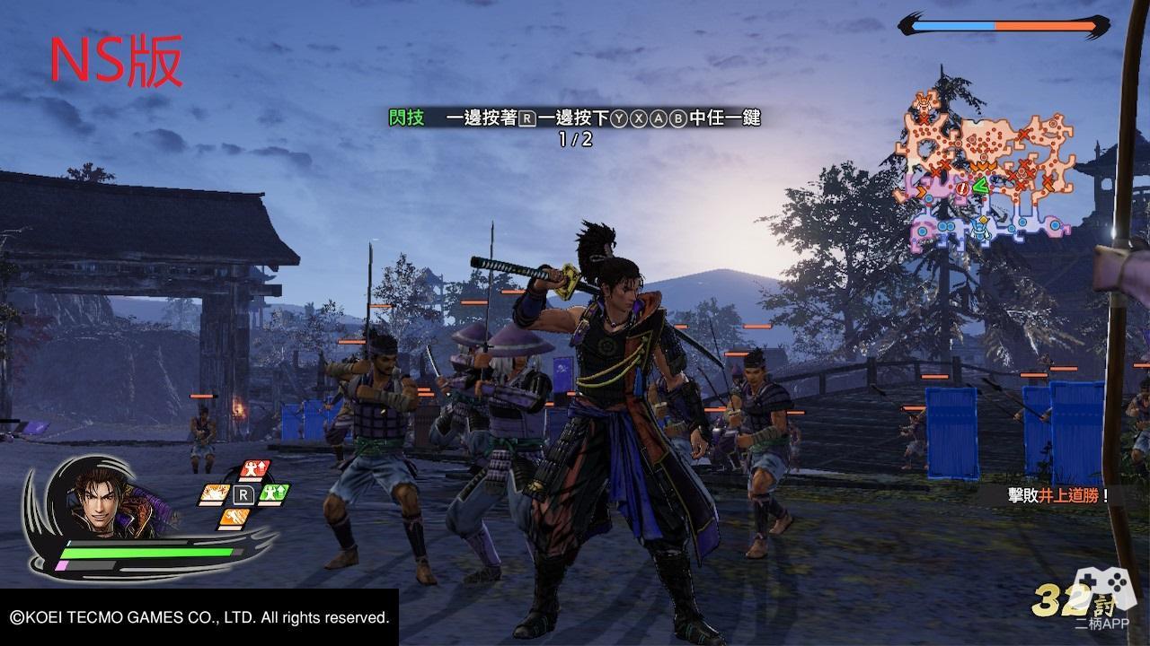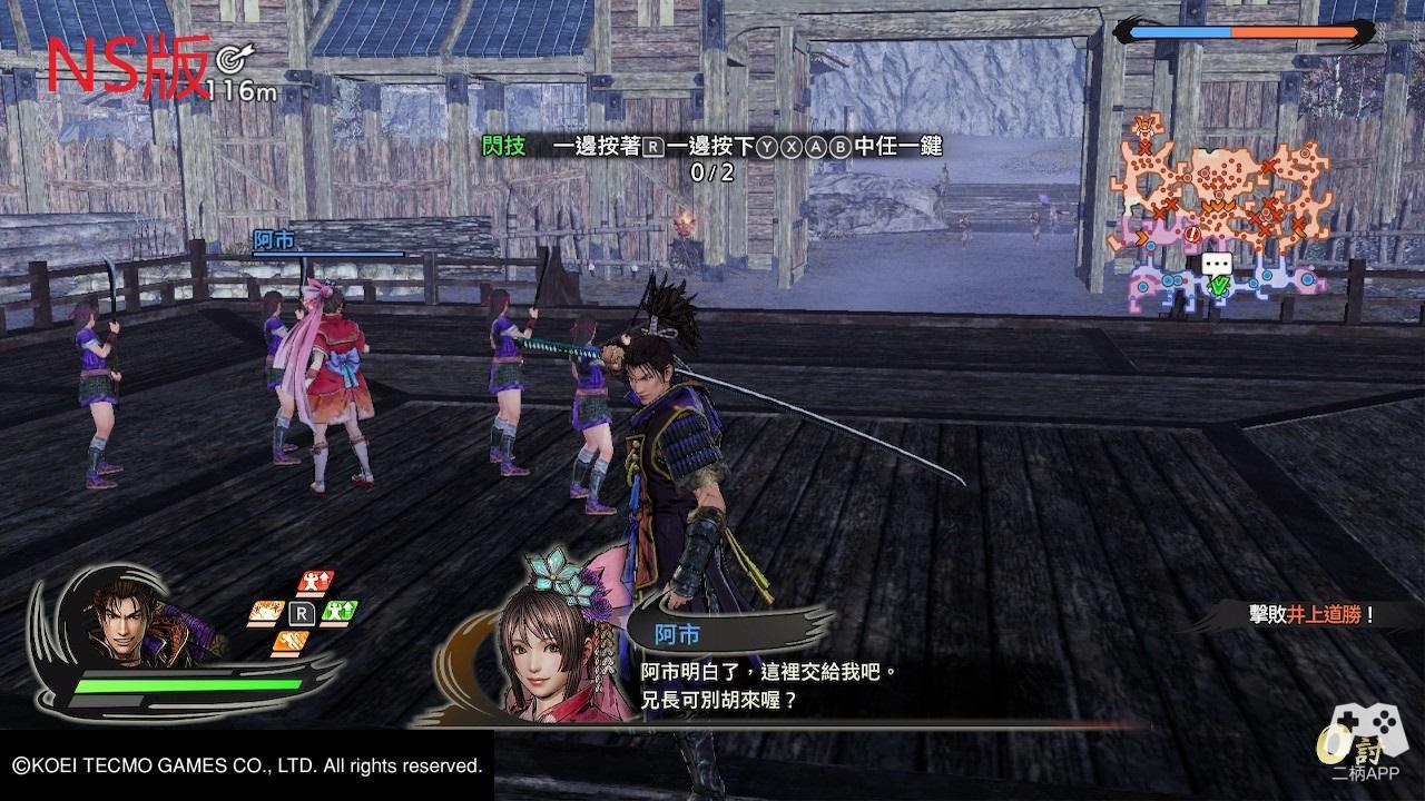 游戏的战斗一如既往的“爽快”!!! 整体战斗风格延续了无双系列传统的“C技”连段模式,前作好评的“神速”系统有保留下来,虽然没有之前那么BUG,不过后续可接普攻或C技,无论是清杂兵还是作为追combo的手段都十分好用。新增加的“闪技”也很好的取代了前作的道具系统(R键集合右边四个按键使用,笔者第一反应是Basara中的固有技),虽然闪技有着CD冷却时间,不过与其他攻击手段配合使用依旧有着不错的效果。此外,通过连击蓄满“练技槽”后可开启极意模式,在该状态下释放皆传无双有角色的特写,虽然类型不同,但还是让人有种和P5放完必杀那般的异曲同工之妙,结合新画风不仅让人眼前一亮也更让爽快度再度提升。
