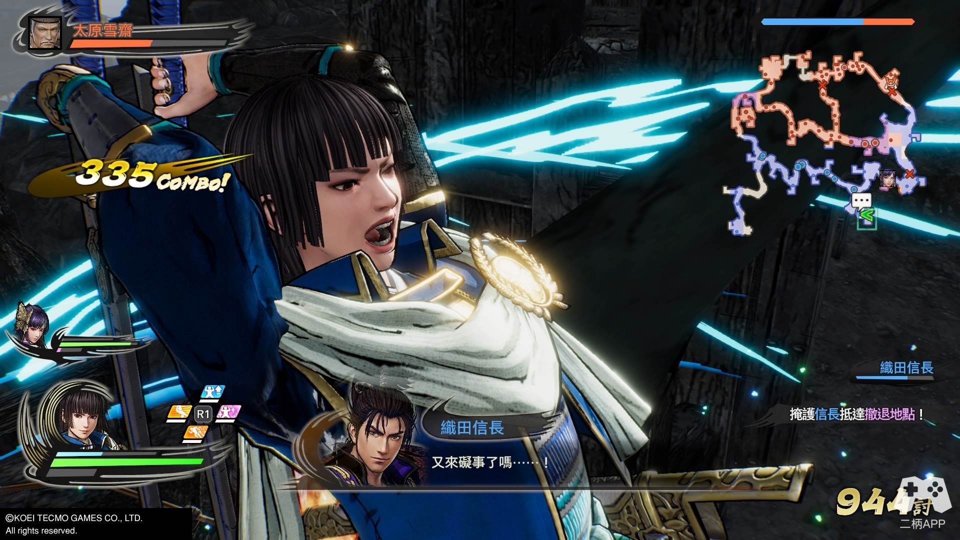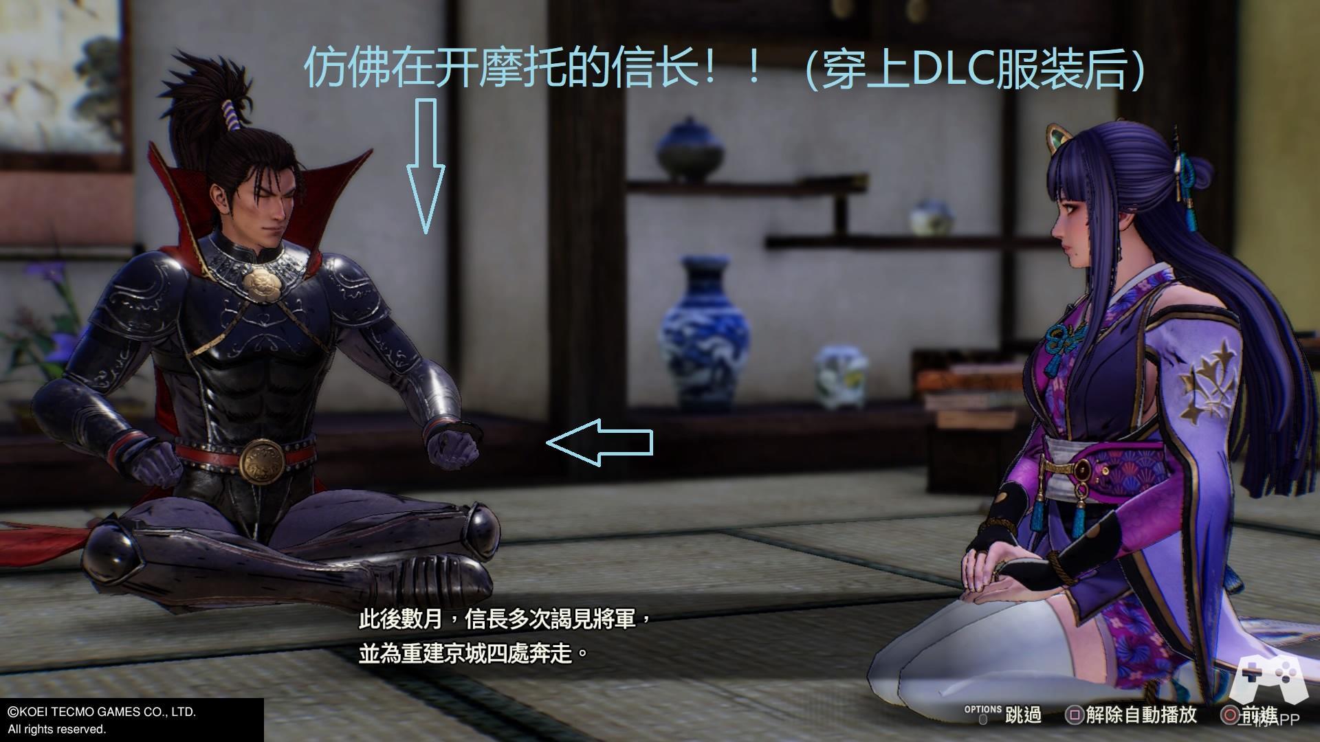 从这里已经能看出本作能省则省的端倪了,虽然人物是重新设计的,但吃老本的地方可谓处处皆是。战国大灯瀬名,这一身绿衣装开启无双后的动作堪称关二爷在世;战国第一美女阿市,动作模组和可爱型人设极其违和,有种左慈妖术变的的感觉;战国恶人松永久秀和前作差别并不大,看起来就像今天村口托尼老师不在,没做造型就出来了……