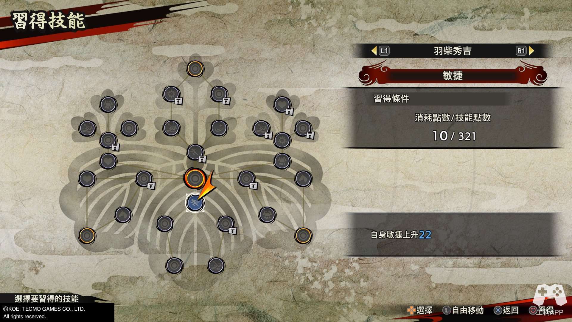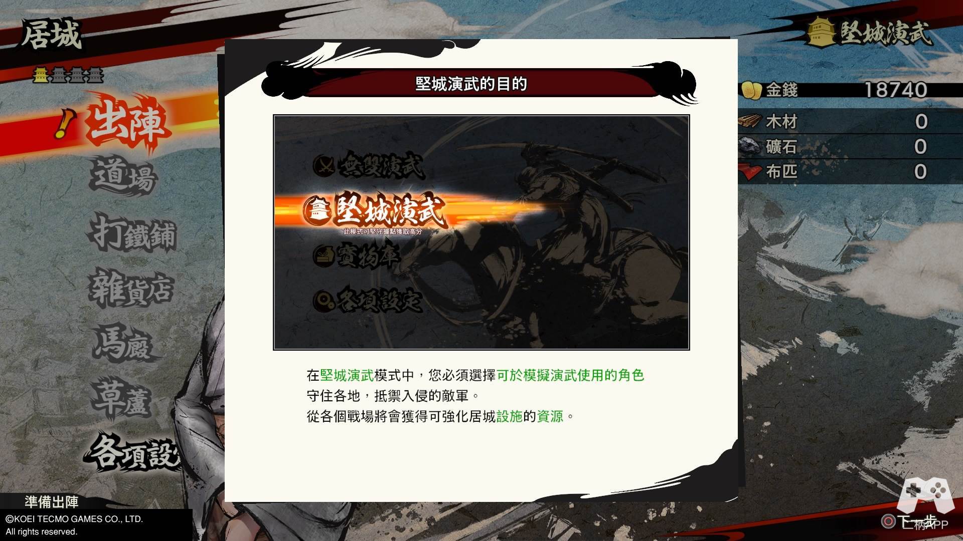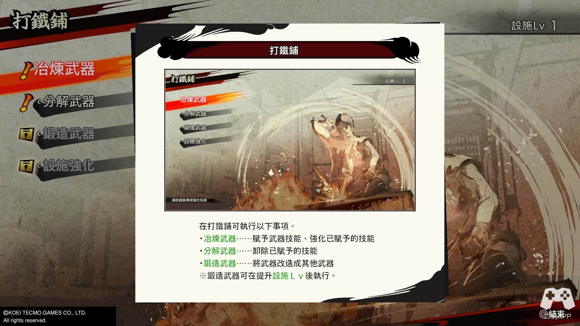 游戏有着丰富的养成系统,人物就有等级,武器熟练度,亲密度,技能树等;而武器(打造和刷最强武器),马厩,设施升级等更是需要刷。这里值得一提的是人物的技能树中每位角色的背景都是自家的家纹,细节好评。