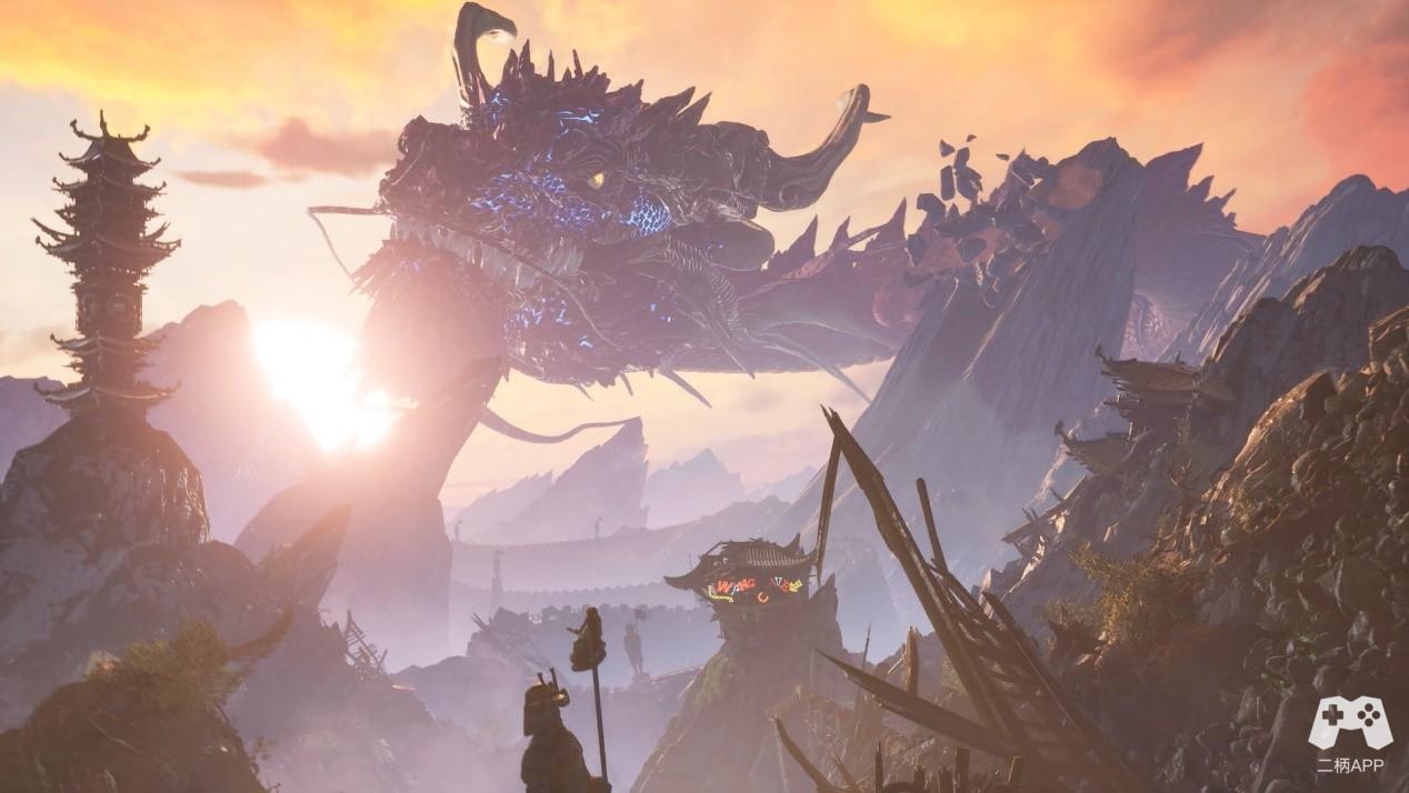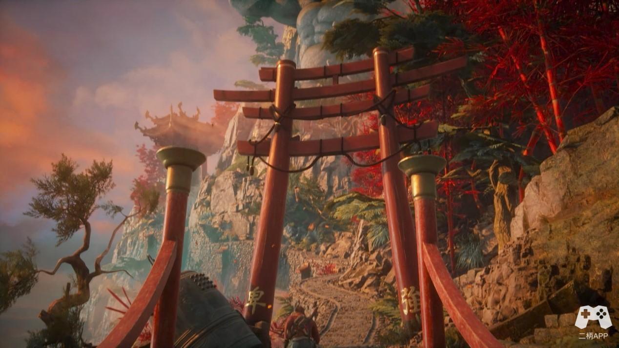 就像我所说的,97年原版《影子武士》有着自家前辈的许多影子,比如毁灭公爵也是一位开着黄腔射爆的肌肉壮汉。也正因如此,尽管是一位中国角色在超现实世界中的日本冒险,世界观却同时参考了中国神话和日本文化,而且还低俗笑话几乎不停口,甚至不合时宜。重启后的Flying Wild Hog并没有打算改变这一现状,而是在符合当下时代要素后,继续在这条道路上前行。只有在王洛施展拳脚功夫时你能看到有一丝“中国功夫”的要素,尽管他用的是武士刀。它苦练咏春拳,但各种枪炮精通,还会气功。王洛就像是旧时代的东亚偏见的集合体,当然在今天大家都对此保持着一种默契。除了在人物上,场景和环境上也因为中日文化的融合显得更加奇妙。中国的古建筑,日本的神社,远古巨龙,日式的妖怪,放在一起有些奇怪但也发生了独特的化学反应,毕竟游戏界独一份的体验。