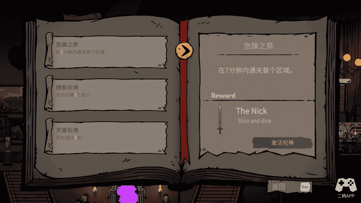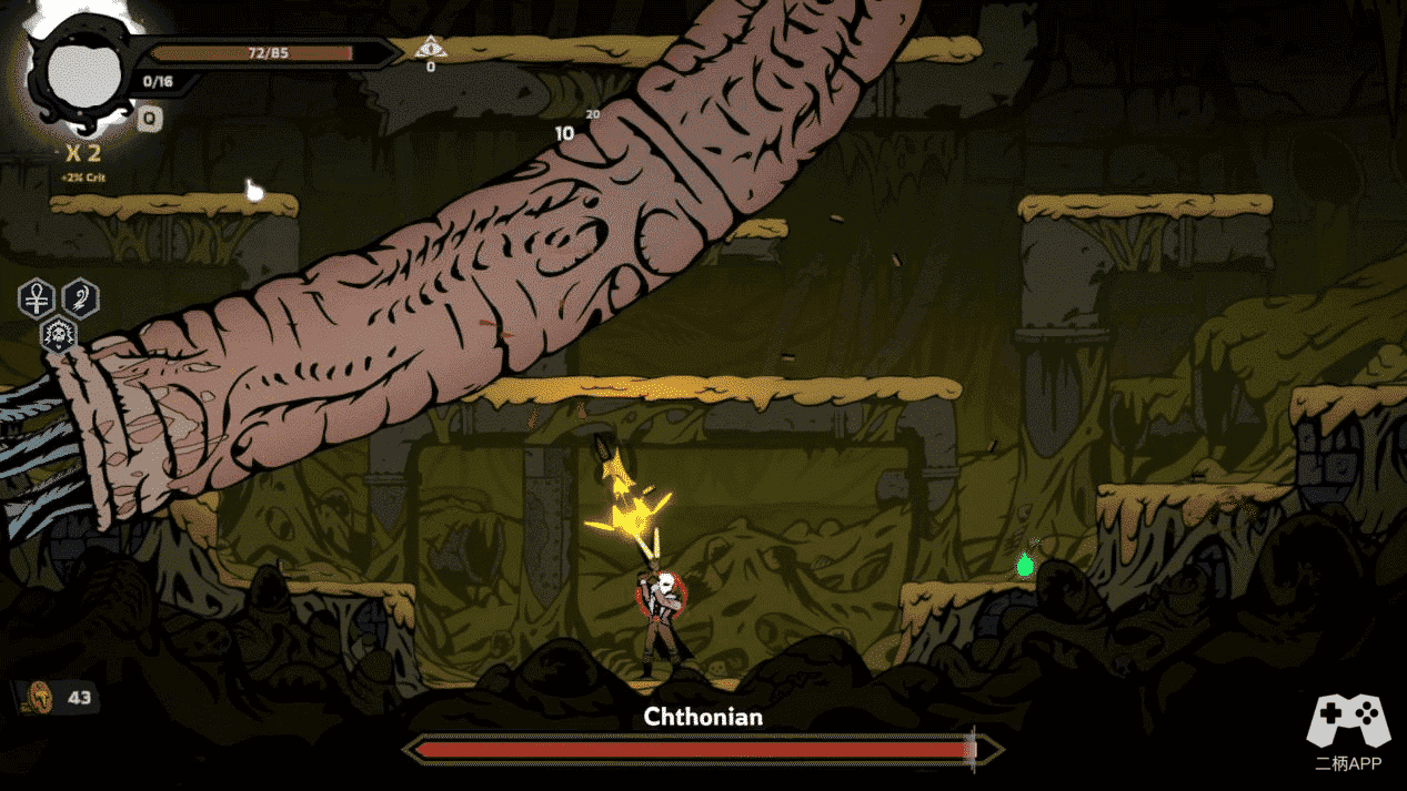 进入游戏后,竟然意外的发现在Steam页面标示不支持的简体中文可以在设置中轻松找到,这无疑为玩家熟悉本作提供了极大的便利,虽然有一些地方没有完全汉化,但对于一款Rogue-like动作游戏来说并不是太大的问题。与其他Rogue-like游戏一样,在游戏过程中如果死亡将回到战斗初始,只能保留“演化”后的能力。然后要再次在随机生成的地图中摸爬滚打。说实话,游戏上手难度还是挺高的,玩家在通过跳跃、翻滚等来闪避敌人的攻击的同时,还要随时观察环境,在随机生成的地图中探索、战斗、成长。而且每次流程所生成的怪物和随机获得的能力加成都不尽相同,这就需要玩家因地制宜的去制定战术与打法,不能一味蛮干。不止在战斗过程中需要眼疾手快,在小关卡的选择上也需要动脑来选择前进路线来获得不同加成或奖励。在游戏中玩家需要在一次又一次战斗中锤炼战斗技巧并熟悉怪物攻击方式,才能在无数的怪物潮中生存下来。如果是喜欢挑战自己的玩家,接触这款游戏后一定会大呼过瘾。