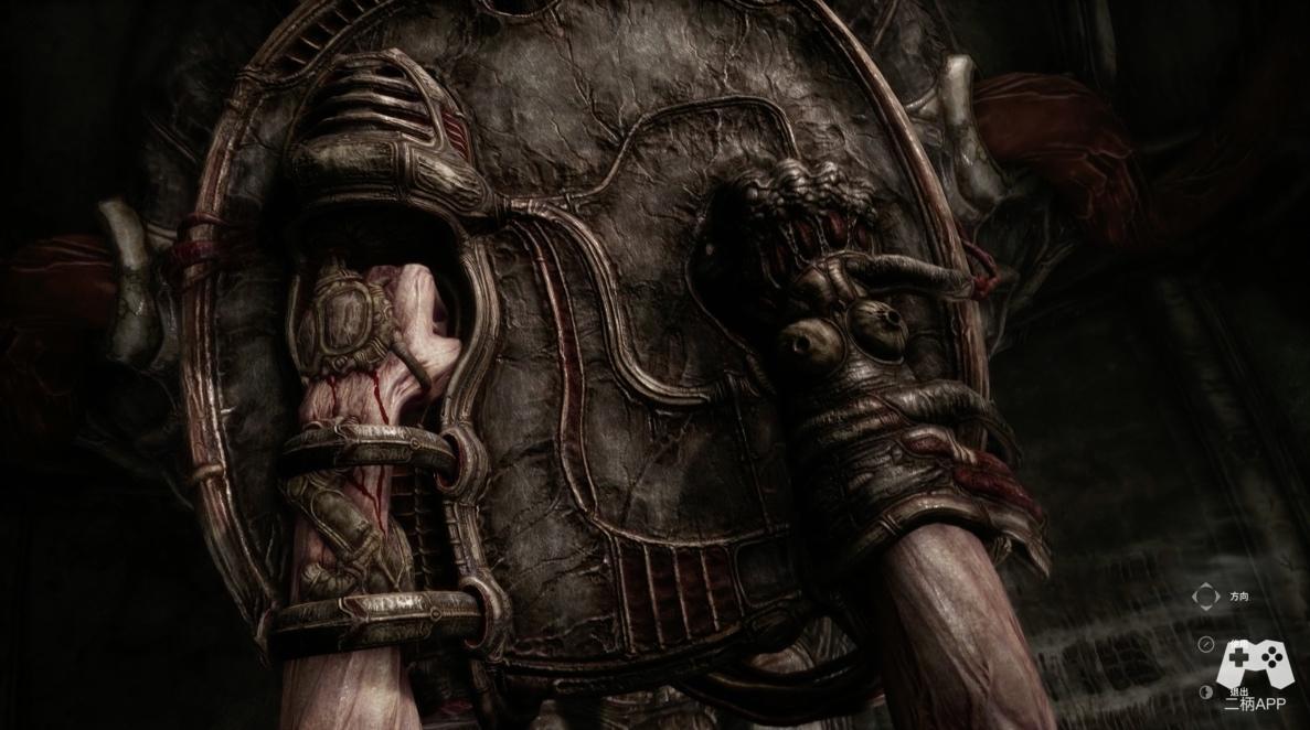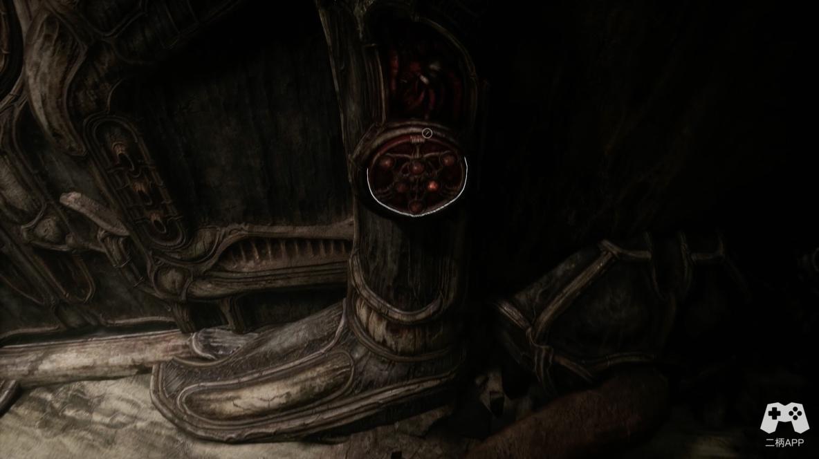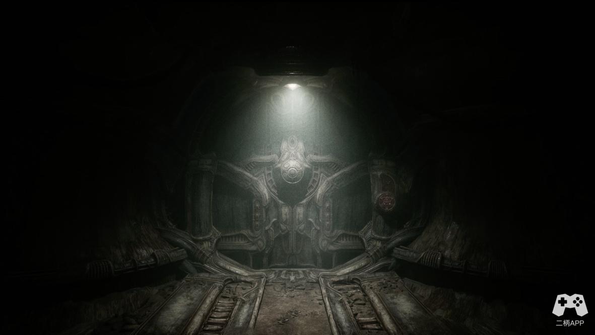 本次游戏体验平台为PC端,在默认4K分辨率,高画面设置下,游戏呈现出远超独立游戏平均水准的画面表现。对冷峻墙壁入门三分的刻画让人不禁感叹这不应该是属于一款定价35.99美元游戏的画面。但是,比起画面的精细程度,特征高度明显的艺术风格显然是更令人眼前一亮。绝大多数玩家在游戏标题处或许就会联想到《异形》这部恐怖电影名篇,对该方面有一定了解的玩家也一定会进而想到此类风格的奠基人,艺术巨擘H.R.吉格尔。