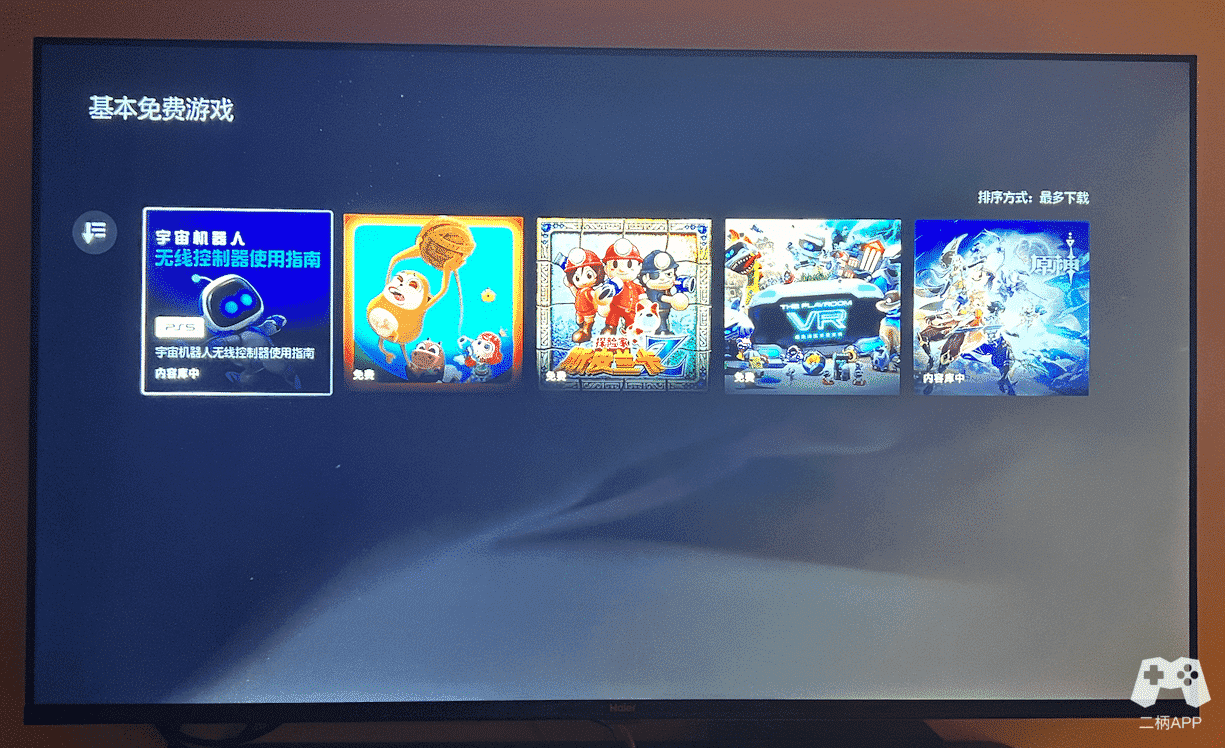 哪怕你还没有买游戏光盘,游戏商店里面就有一些免费游戏。例如官方出的《宇宙机器人》、大名鼎鼎的《原神》!