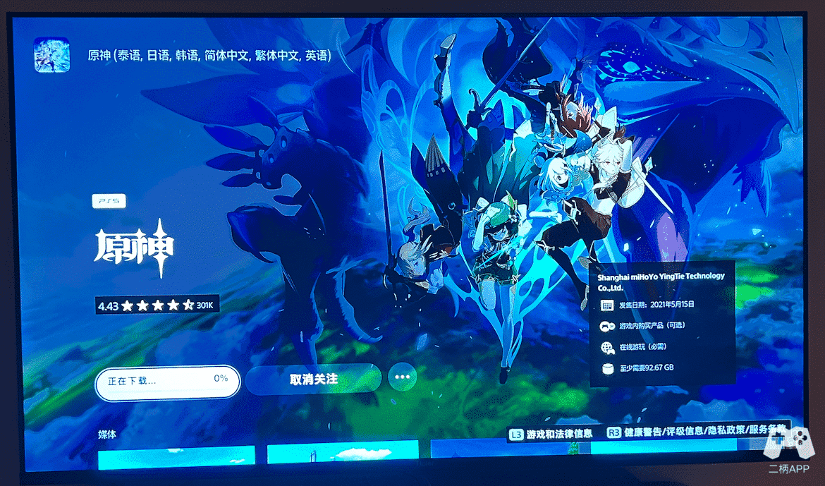 然后,我又在PS平台体验了刚刚获得PS大奖的国产大作《原神》,连接PS5主机在电视机上玩耍跟在手机小屏幕上是完全不一样的体验!