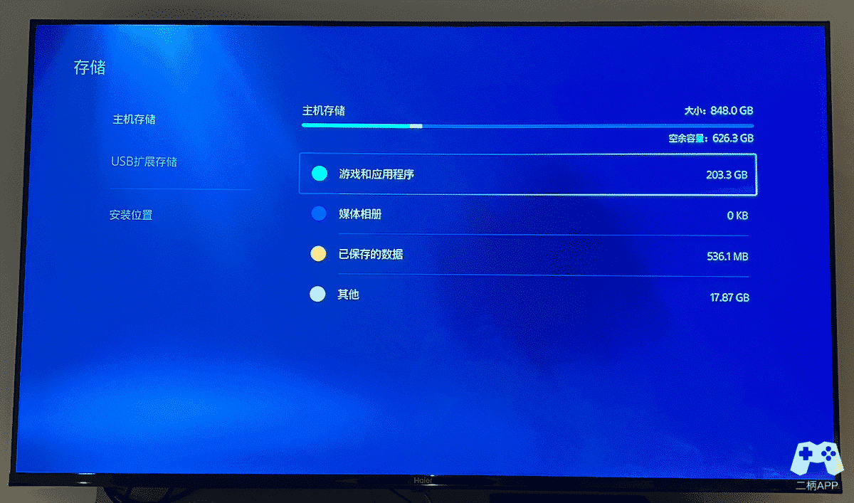 主机空间提高到了848G!可以装下更多你爱的游戏!