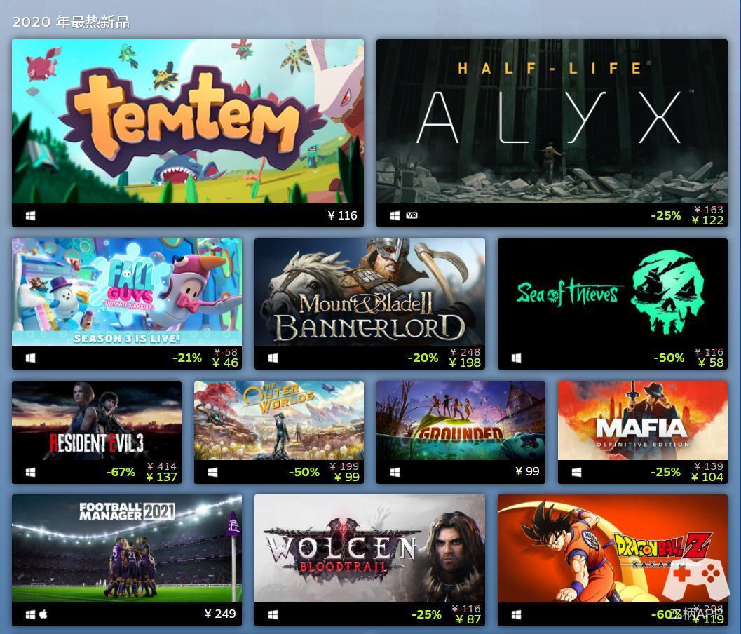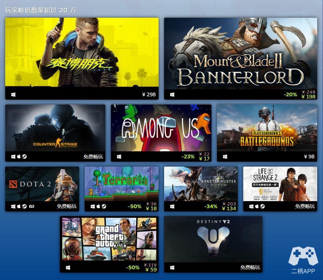2020年在Steam平台上收入最多的游戏