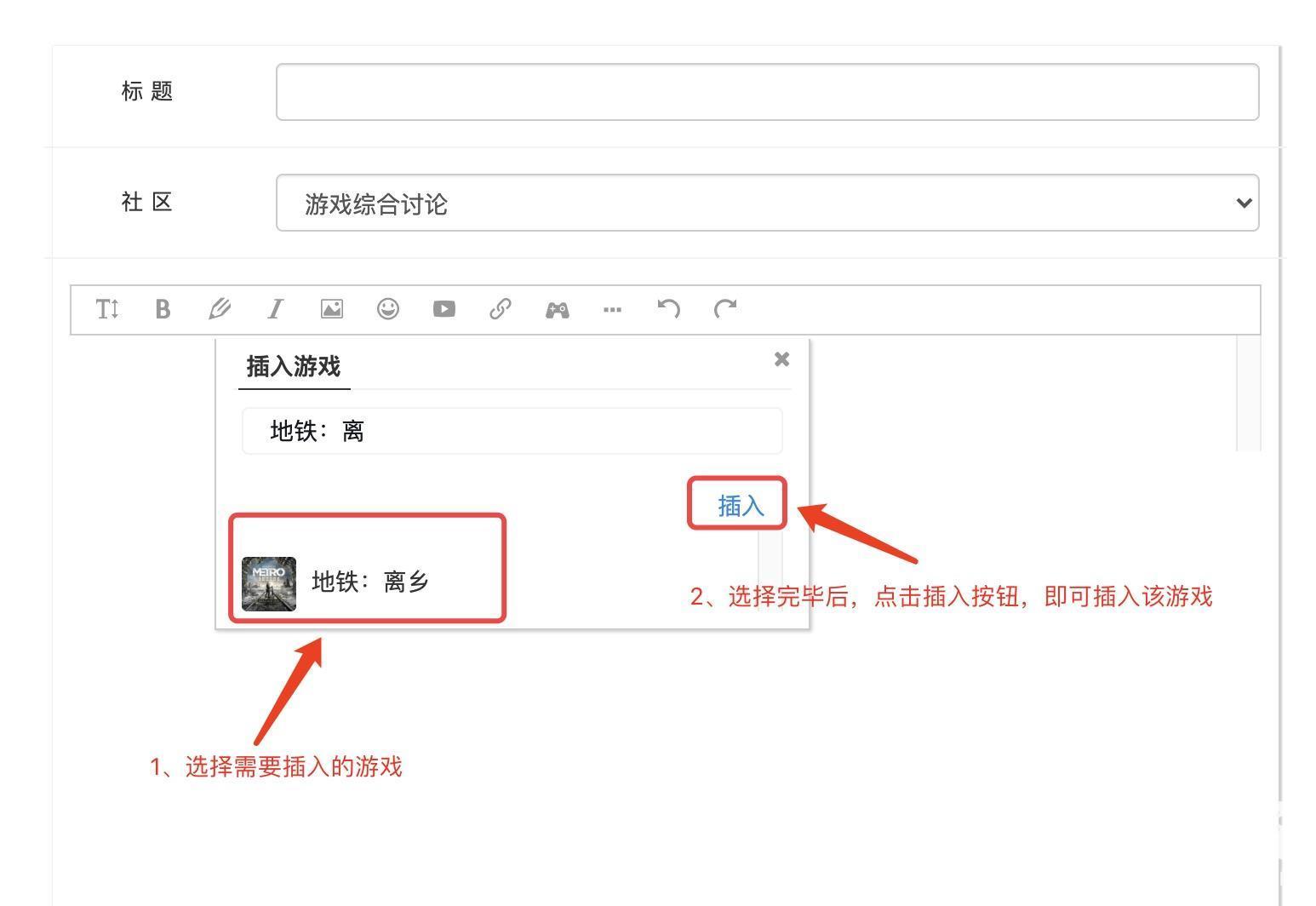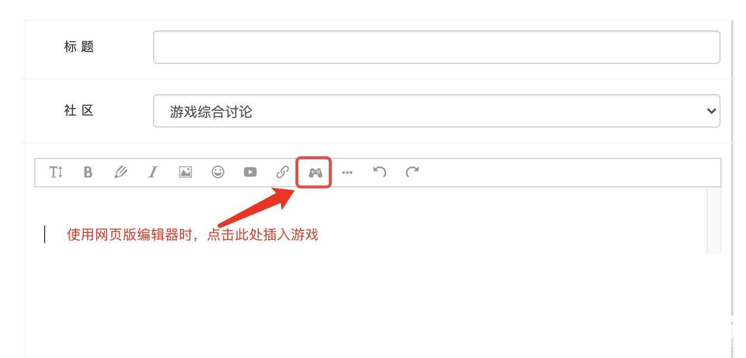 HI,柄友们大家好,为了让各位拥有更好的发帖体验,二柄社区新增加了在帖子中插入「游戏」的功能,具体的操作方法,请看下面的说明。