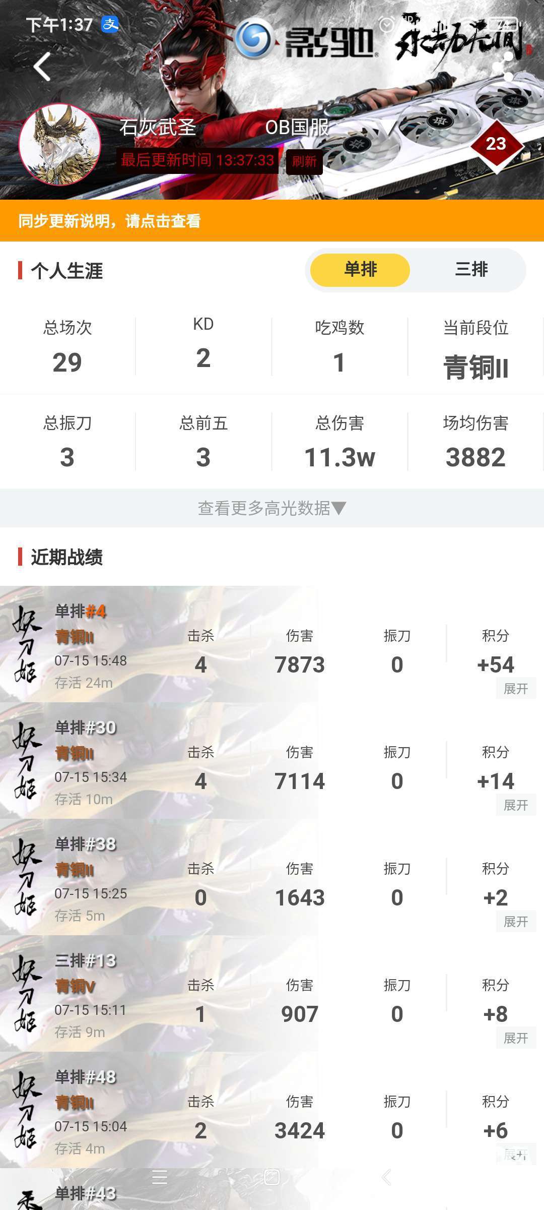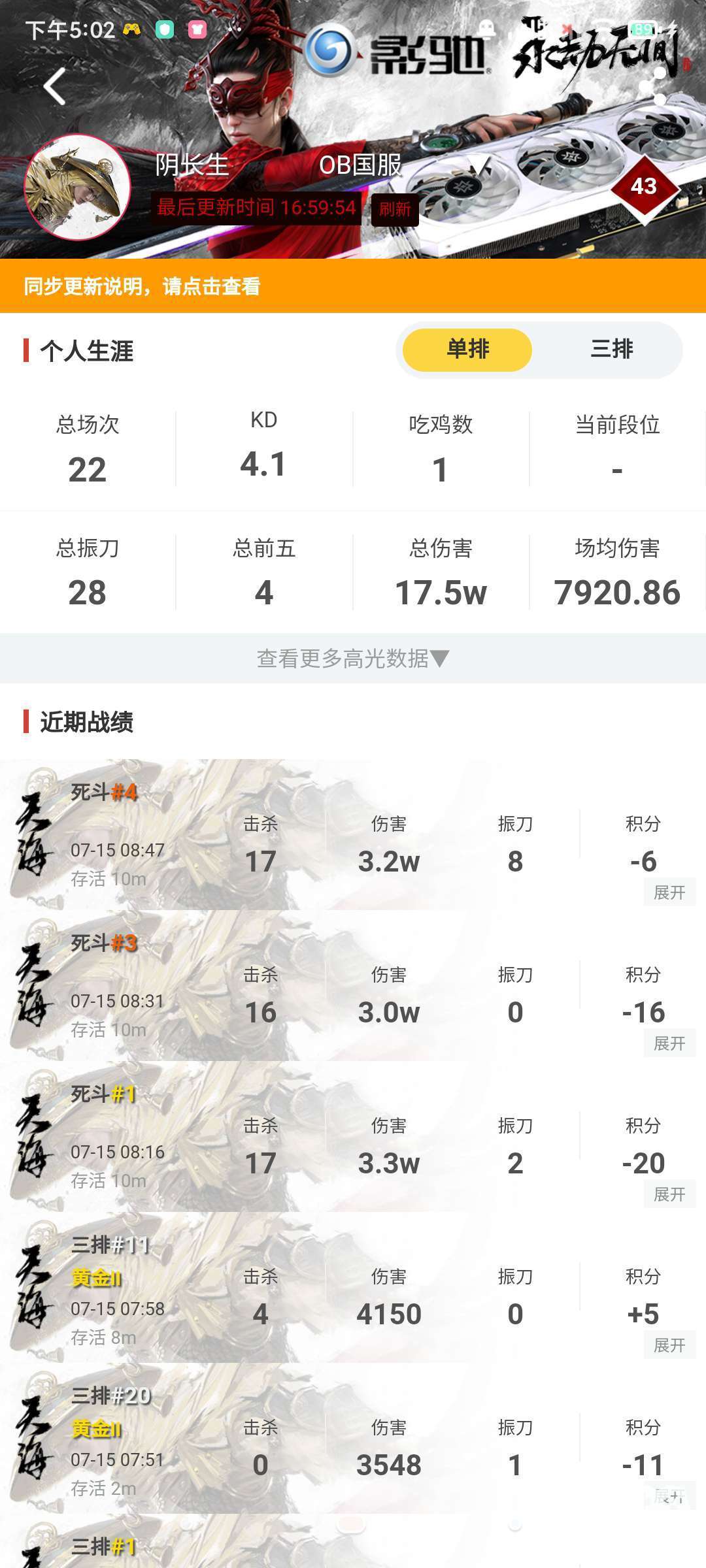 一、绑定成功后,返回「我的」页面,在「我的」页面即可查看到「永劫无间数据管理」