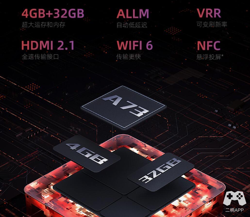 机芯方面,搭载的是4核A73处理器、4GB+32GB大运行存储。支持ALLM自动低延迟、WIFI 6高速传输以及VRR可变刷新率。