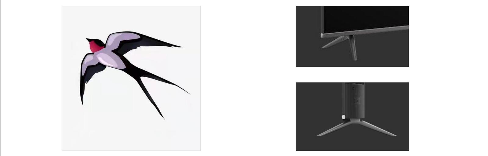 电视的支架采用了分叉式的燕尾底座,在延续简约风格的同时,又能保证电视机身稳定。