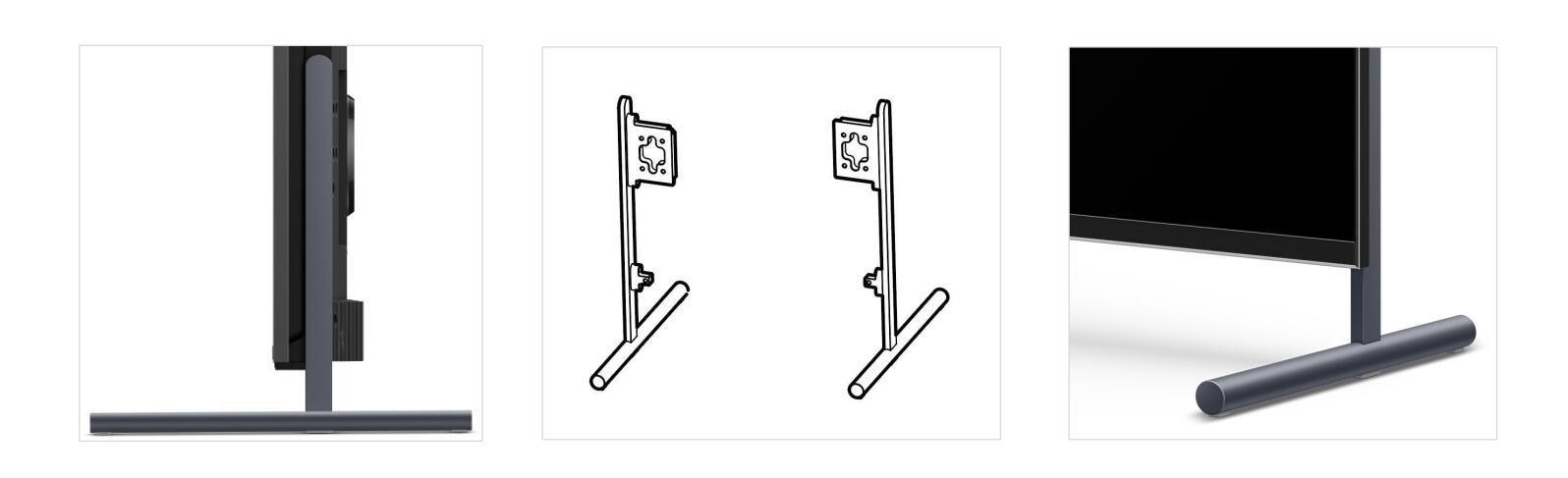 需要注意的是,55英寸到85英寸的T7E采用的是燕尾底座。而98英寸的T7E由于尺寸更大,采用的是像直升机一样的双枪式底座。