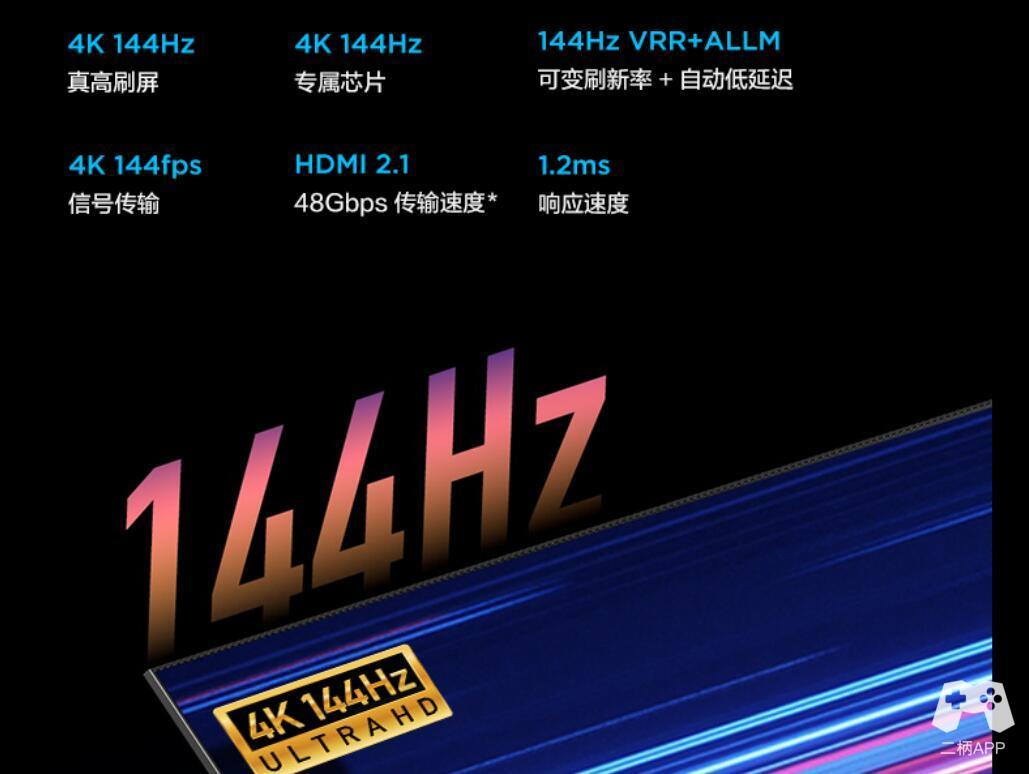 这里的全通道144Hz指的是144Hz屏幕 + 144Hz芯片(MT9652 PLUS) + 144Hz VRR + 4k 144Hz HDMI 2.1。