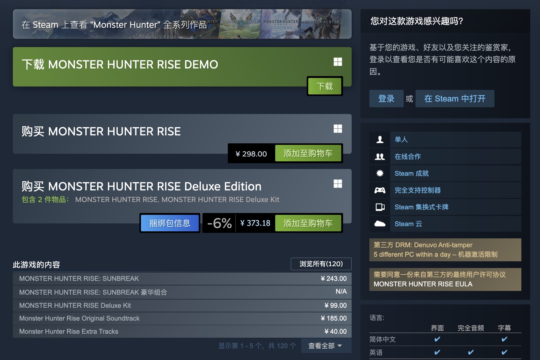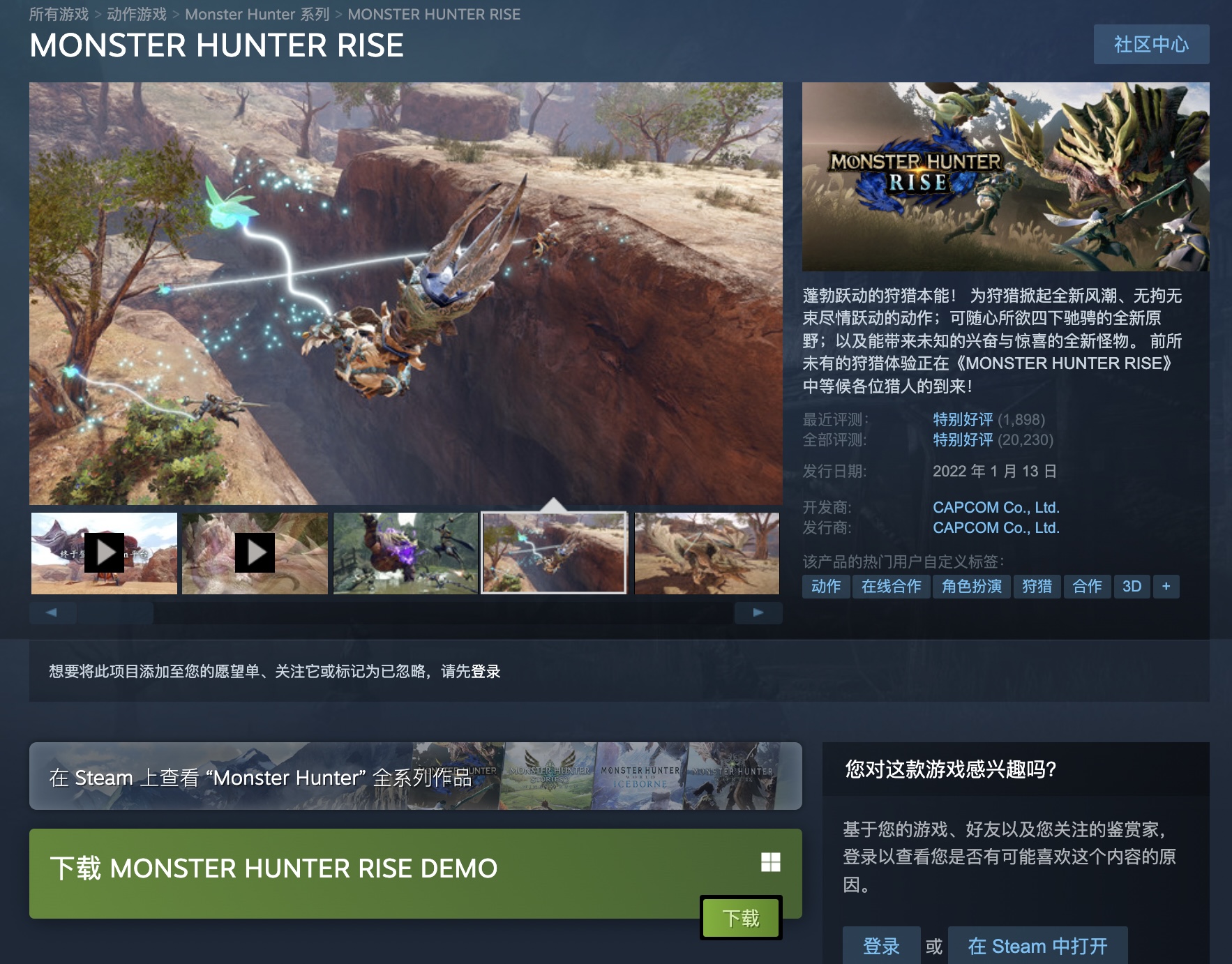 《怪物猎人 崛起》Steam永降至298元,直降98元