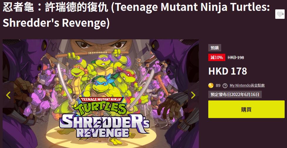 【《忍者神龟:施莱德的复仇》Switch版预售开启,将于6月16日发售】任天堂HK商店目前已开启《忍者神龟:施莱德的复仇》Switch中文版预售,页面显示游戏将于2022年6月16日发售。此外游戏也确认将登陆PS4/Xbox One/PC平台。