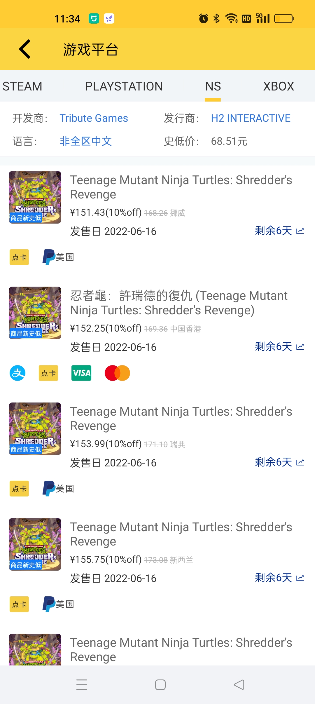 同时此游戏之前已经上架NS商店,其中MX区折后价最低约68元,HK区折后价约152元,仅HK区支持中文。