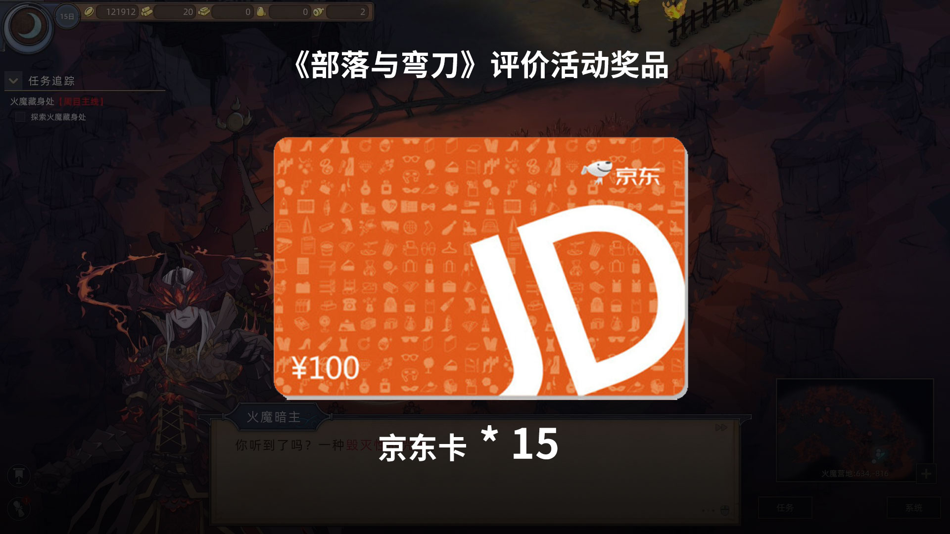 给《部落与弯刀》打分并评价抽15张100元京东卡