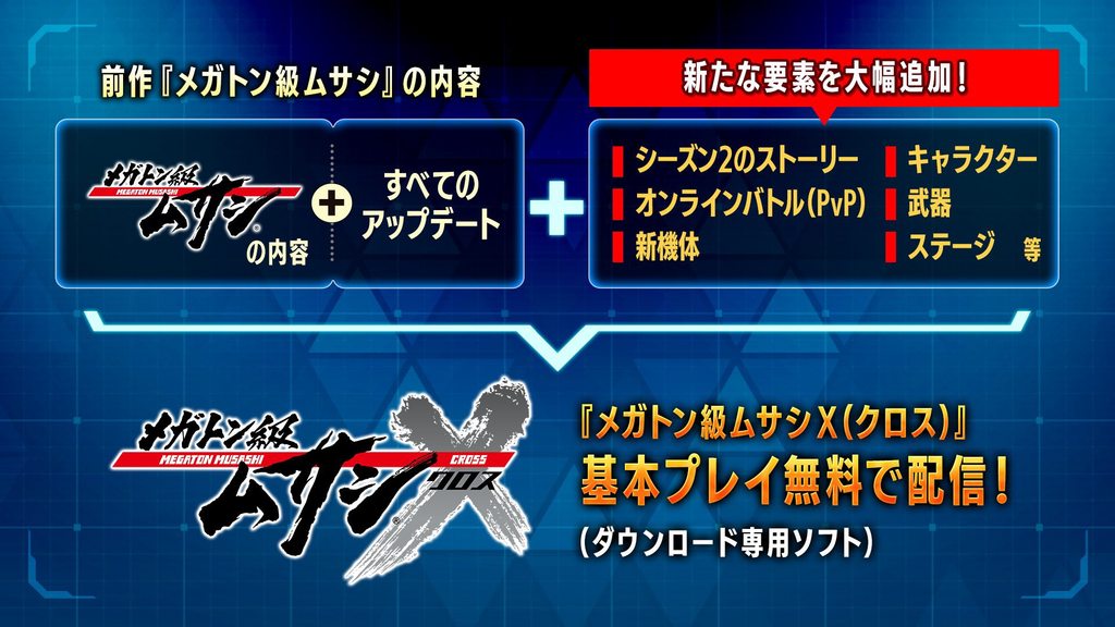 【免费版《百万吨级武藏X》公布,与《魔神Z》《盖塔》联动展开】在昨天举行的直播活动中,L5公布了新商品《百万吨级武藏X》的消息。本作是基于已发售的《百万吨级武藏》制作而来,预计将于2022年秋季免费推出。据悉游戏包含原作的所有内容(包括升级包)、还会追加第二季剧情、角色、PVP线上对战、全新的武器/机体、全新必杀技以及场景等等。在系统上还会有着更多的空战和合体技的存在,并且还宣布将和超级机器人《魔神Z》《盖塔》展开联动。