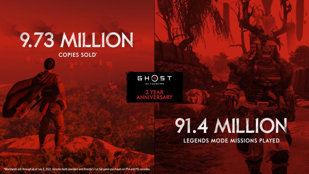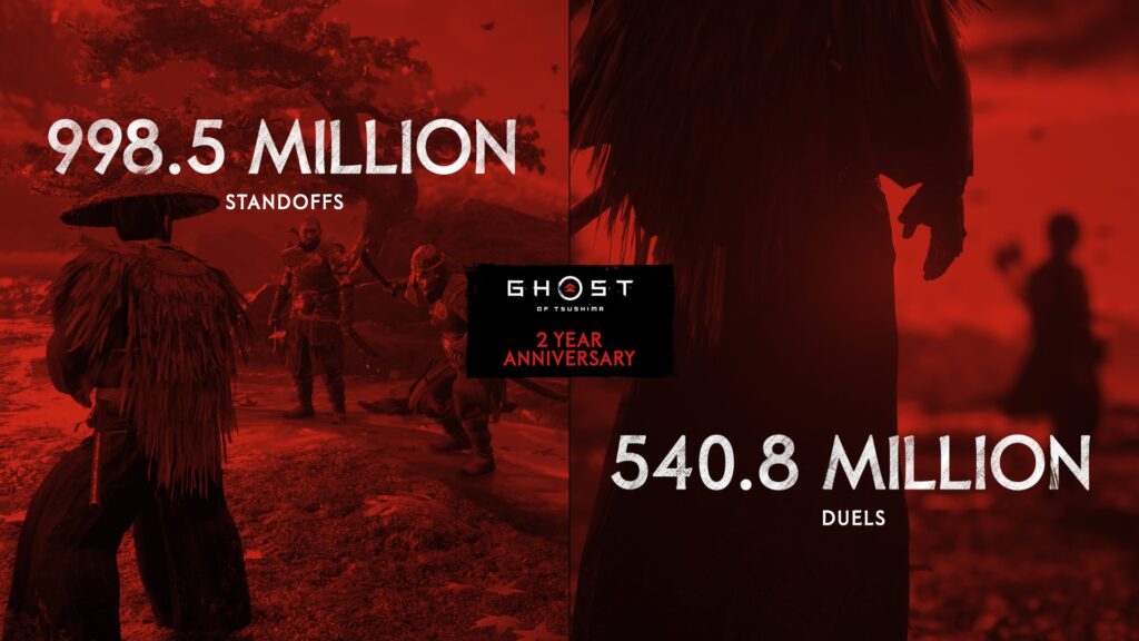【《对马之魂》总销量已超过973万份】开发商Sucker Punch宣布,截至7月3日,《对马之魂》总销量已超过973万份。上一次关于该作的销量消息是今年1月份时达到了800万份。除此之外,Sucker Punch还分享了一些有趣的数据,比如玩家共养了7518万只狐狸,拍摄了7800万照片,奇谭模式游玩了9140万次,骑马时间达到6437年等。