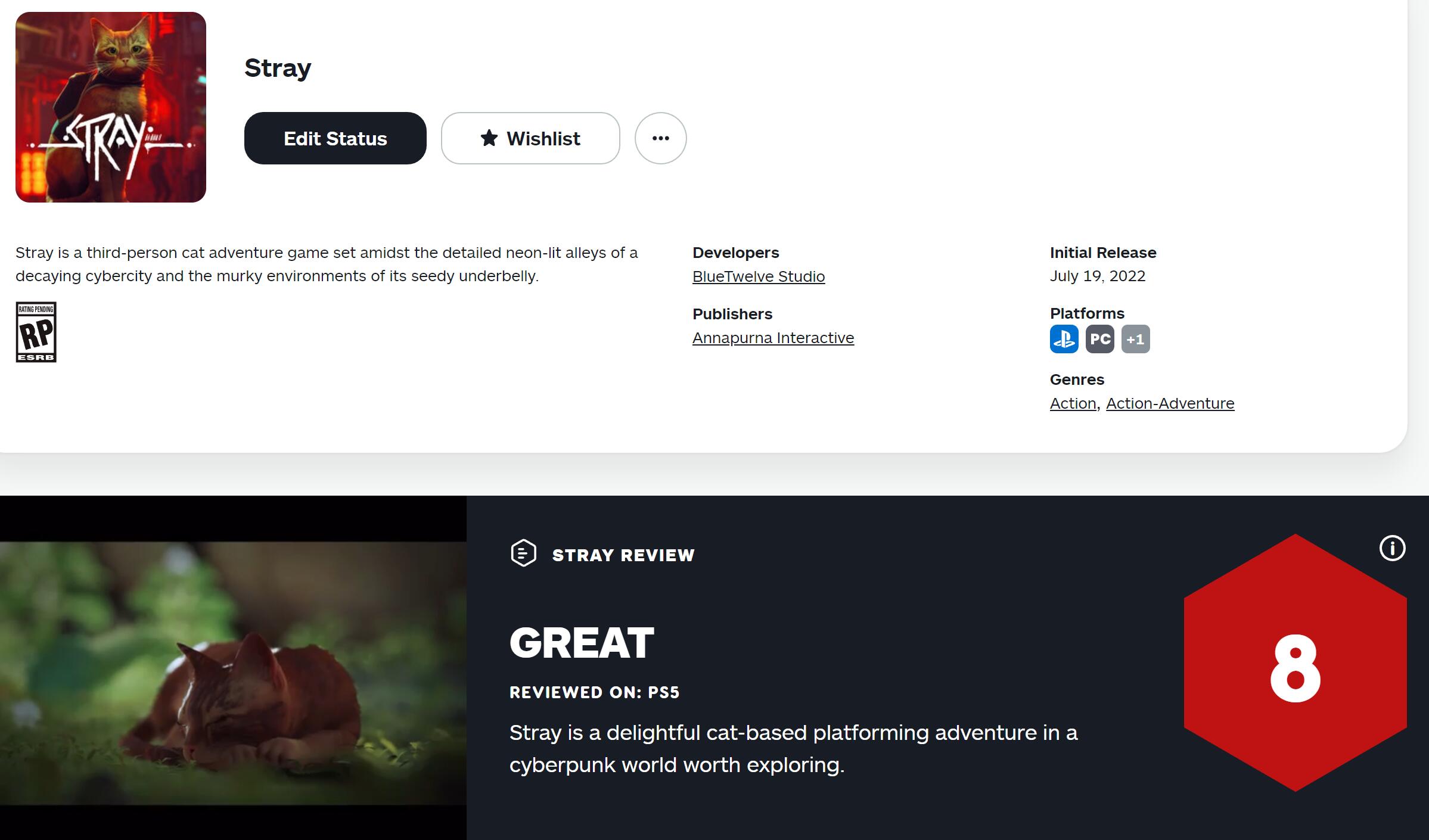 《流浪》媒体评分解禁:IGN 8分 GameSpot 9分