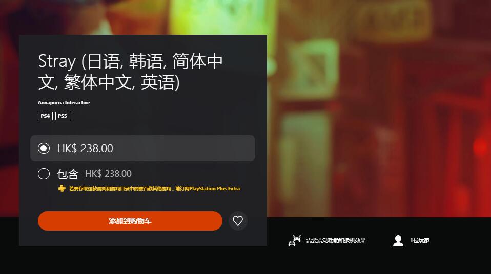 【猫咪冒险游戏《流浪》目前已登陆PS4/PS5平台】第三人称猫咪冒险游戏《流浪(Stray)》目前已登陆PS4/PS5平台,售价238HKD,同时首发加入PS+第二/三档游戏阵容,游戏也将在今晚12点登陆Steam平台。