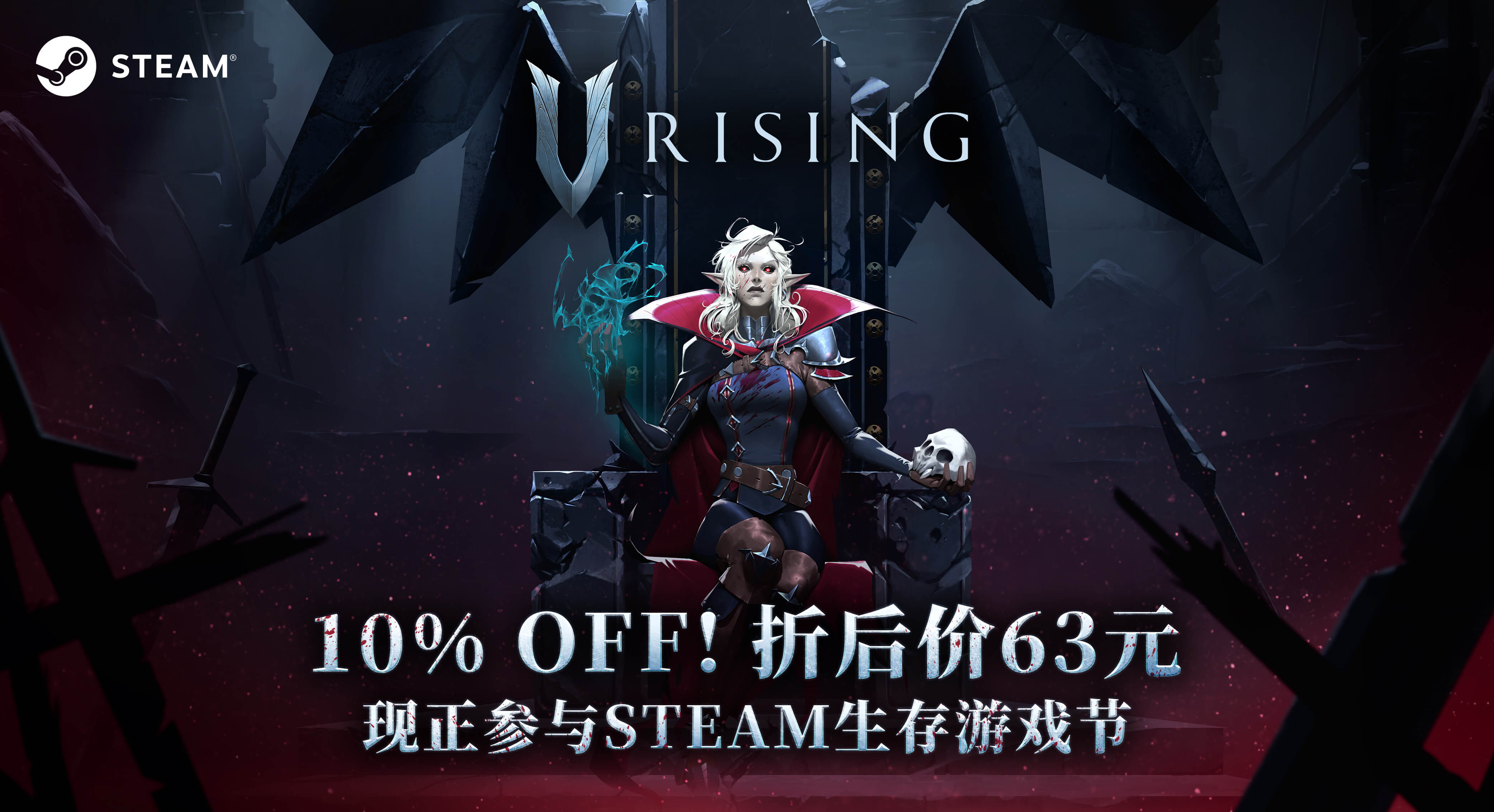 【生存游戏《V Rising》官方中文名确认为《夜族崛起》】曾屡次登顶Steam周销量排行榜的生存游戏《V Rising》,今日通过微博正式宣布,官方中文名称为《夜族崛起》,同时《夜族崛起》的官方微博和B站账号现已开启。此外,《夜族崛起》将参加Steam生存游戏节(北京时间8月2日1点开启),期间游戏会进行9折特惠活动,价格为63元。注:今天下午我们也将带来《夜族崛起》游戏活动,感兴趣的柄友们届时可以关注一下!