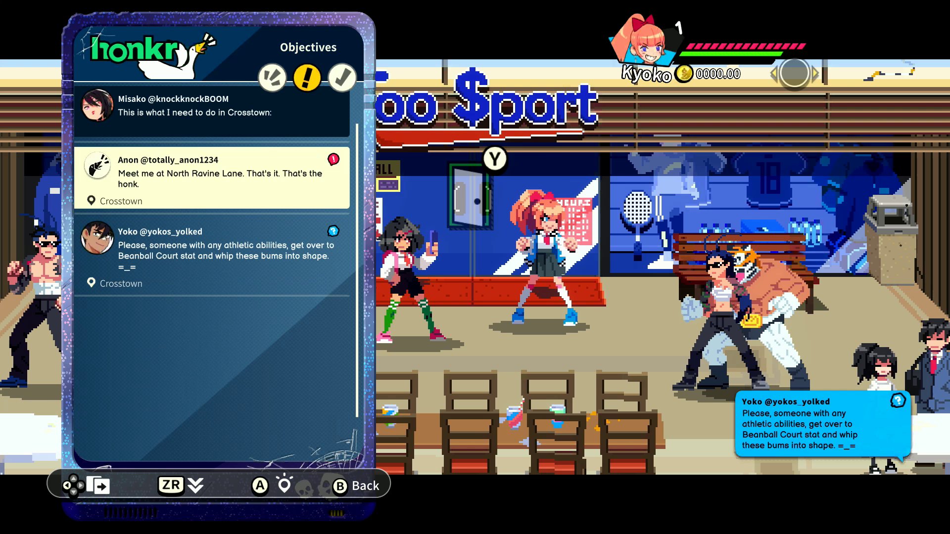 【《热血物语外传:热血少女2》新UI界面公开】开发商WayForward近日公布了《热血物语外传:热血少女2》新内容,游戏的UI界面将重新设计,用户界面将更像智能手机的界面,里面包含一系列应用程序,包括支线任务、查看已解锁物品、游戏地图等。《热血少女2》将于今年夏季登陆PS5、Xbox Series、PS4、Xbox One、Switch、PC平台,具体日期尚未公布。