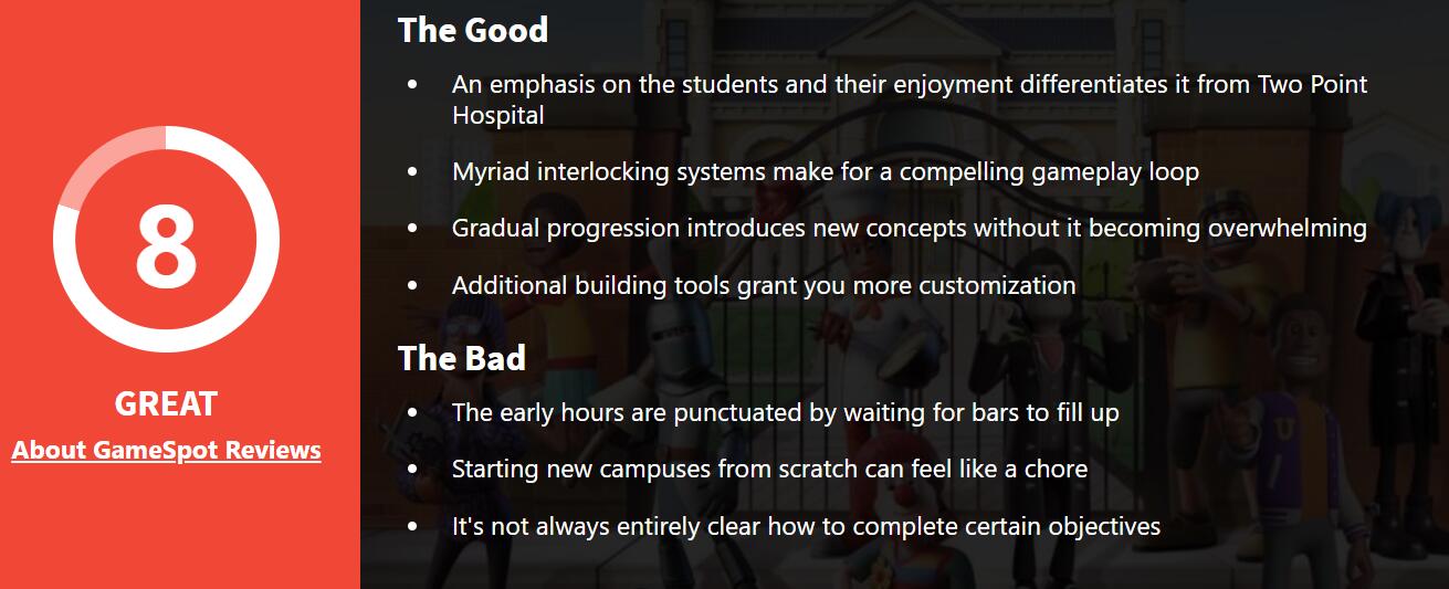 模拟经营游戏《双点校园》获IGN/GS双8分评价