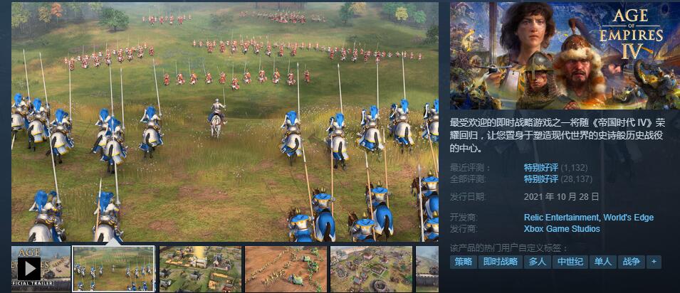【《帝国时代4》Steam限时免费游玩,并发布免费DLC】为庆祝《帝国时代》系列推出25周年及《帝国时代4》发售1周年,目前《帝国时代4》在Steam平台开启了免费游玩,活动截止至本周末,同时游戏还会在10月25日免费提供DLC,为玩家们带来2个全新文明。