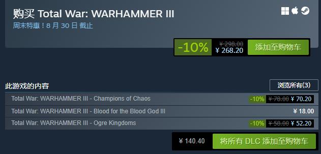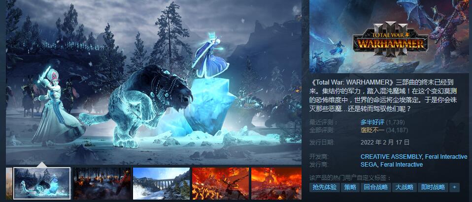 《全面战争:战锤3》Steam平台开启优惠,平史低价268.2元