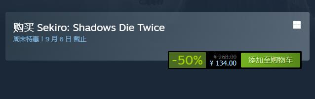 《只狼:影逝二度》Steam平台开启优惠,平史低价134元