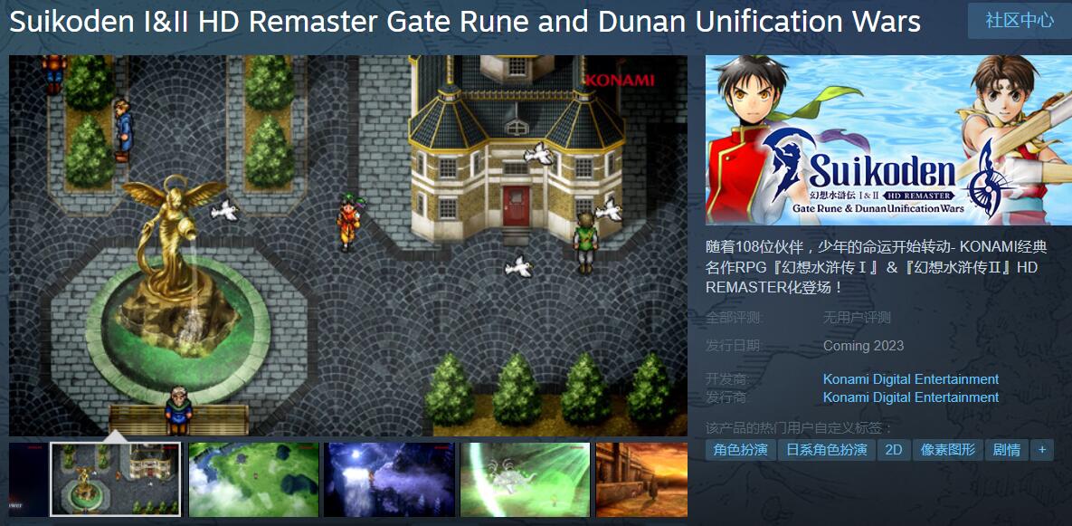 【Konami公布《幻想水浒传1&2 HD复刻版》,包含中文】Konami在今日的TGS展会中正式公布了《幻想水浒传1&2》HD复刻版,2023年登陆PS4/Xbox One/Switch/Steam平台,目前游戏Steam页面已上线(锁国区),页面显示游戏包含中文。HD复刻版包括以下特性: