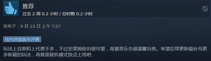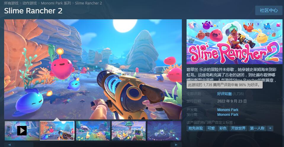 【《史莱姆农场2》抢先体验开启,收获Steam玩家“好评如潮”】由Monomi Park工作室开发并发行的《史莱姆农场2》已在Steam开启了抢先体验,截至目前的评论中,有96%的玩家给出好评,达成“好评如潮”。而且该作还打破了Monomi Park工作室的最佳销售日记录。玩家们普遍认为《史莱姆农场2》在细节上比前作更细腻,背景音乐也很温馨治愈,玩法上也会没一代那么繁琐。而也有玩家认为游戏在优化上还有待进步,同时也期待联机模式早日推出。《史莱姆农场2》现已登陆PC和Xbox平台,首发加入Game Pass。