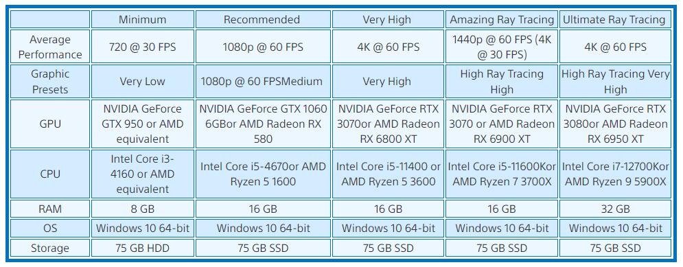 【《蜘蛛侠:迈尔斯·莫拉莱斯》PC版配置要求公布】《蜘蛛侠:迈尔斯·莫拉莱斯》将于11月18日登陆Steam/Epic Games Store平台,该游戏具有多种级别的光追选项,并对超宽屏提供了支持,支持NVIDIA DLSS 3。而在详细设置中包括纹理质量、细节级别、人群和交通密度、可视距离等多个选项。另外官方也公布了从最低要求到最佳光追的五个不同级别的配置要求(见图1)。