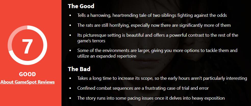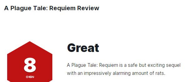 《瘟疫传说:安魂曲》媒体评分出炉,IGN 8分,GS 7分